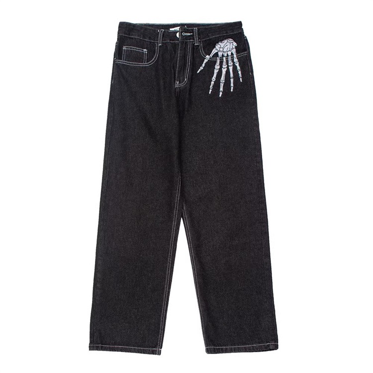 Twinkling star激安セール ダーク系 骨格刺繍 メンズデニム ストレートカット リラックスフィット 日常着用