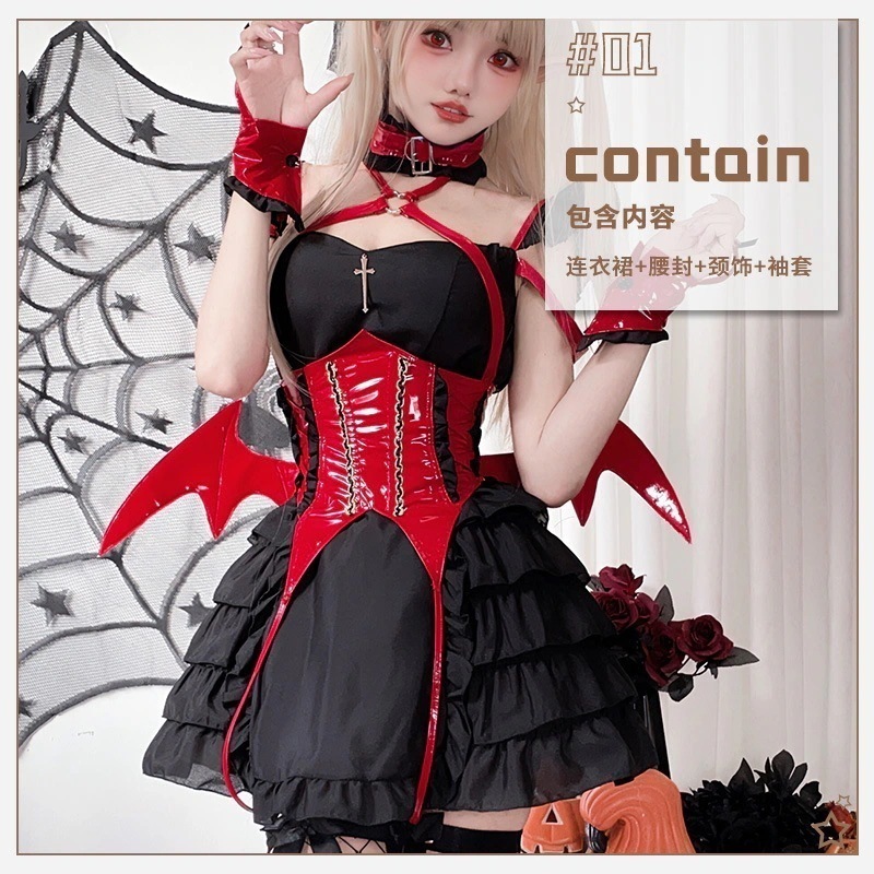 ハロウィーン衣装暗黒ゴシックメイド服セクシー小悪魔日本アニメキャラクターがコウモリ服を演じる コスチューム