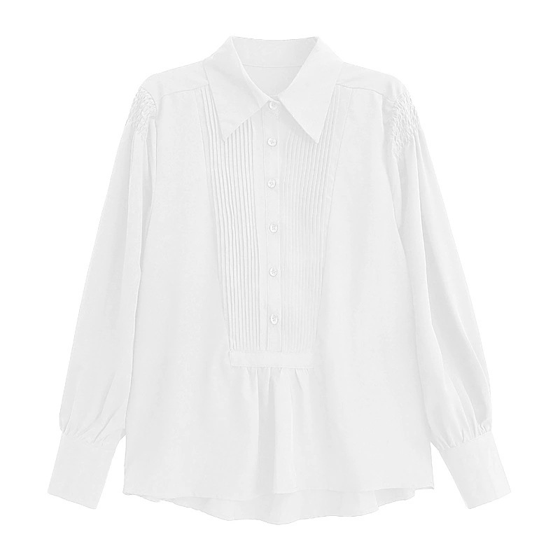 早秋の新型ホワイト長袖シャツ女性若見えフランスの甘い白い上着通勤長袖ブラウス