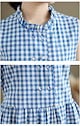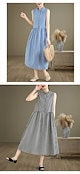 ワンピース レディース ギンガムチェック ノースリーブ シャツワンピース 襟フリル 袖なし シャツワンピ チェック柄 立ち襟 フレア ロングワンピース ブロックチェック ミモレ丈 ゆったり ロング ワ