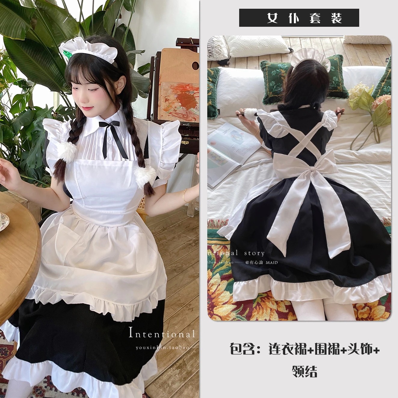 【1点ご購入 で10点プレゼントいたします】オタク系白黒メイド服cosかわいい定番メイド制服ロングスカート