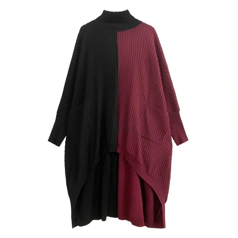 【J.Fashion】 2025秋冬新品 欧美風 ニットワンピース 体型カバー ロングニット タートルネック ドッキング おしゃれ 関連商品は店で購入可能 レディース ニット メガ割