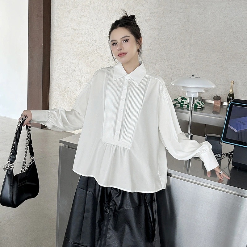 【J.Fashion】 2025秋 シワ 花ドッキング ブラウス おしゃれ レディース シャツ 関連商品購入可能 メガ割