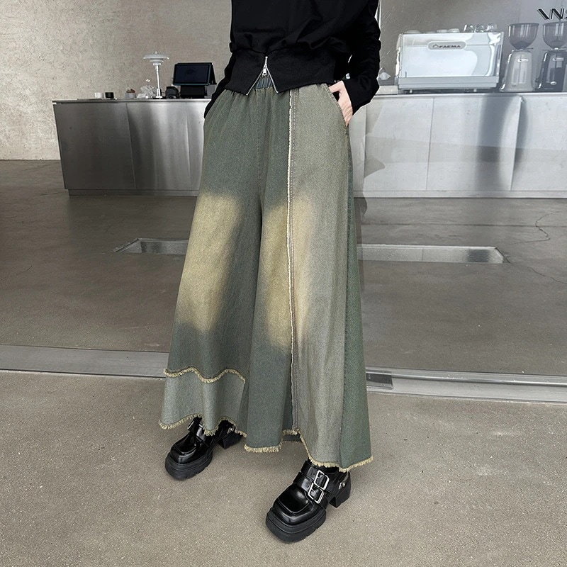 【J.Fashion】 2025秋 デニムパンツ ドッキング色 ワイドパンツ ストレート おしゃれ レディース 関連商品購入可能 メガ割