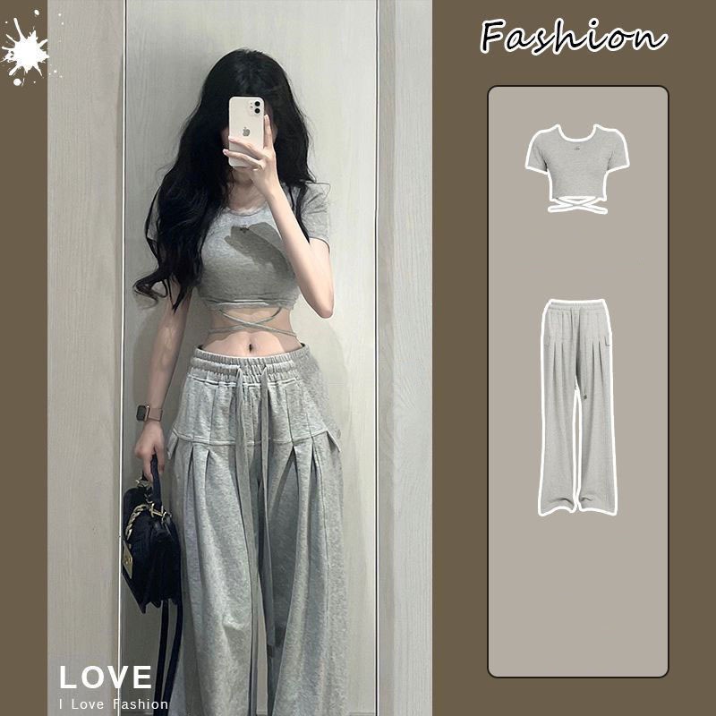セットアップ 夏新作 ギャル ショート丈 半袖Tシャツ/ワイドパンツ 2点セット レディースファッショ ハイウエスト スウェットセットアップ 上下セット