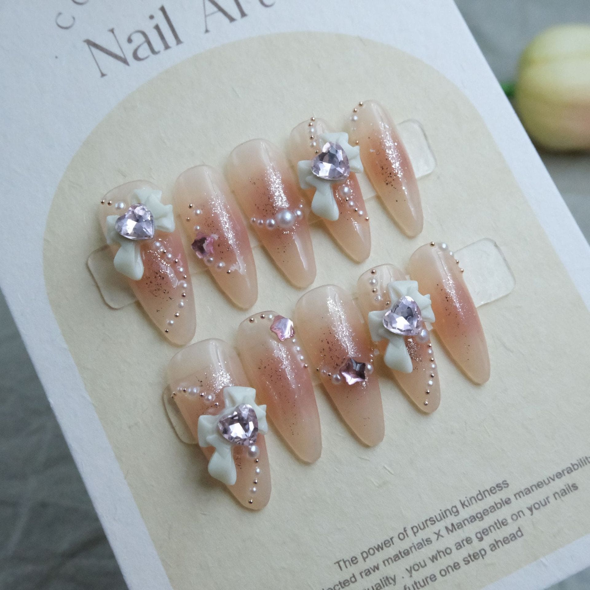 ネイルチップ手作りネイルアートウェアネイルネイルシールプレミアムライト高級赤面グリッターリボン氷半透明ヌードパールグリッター