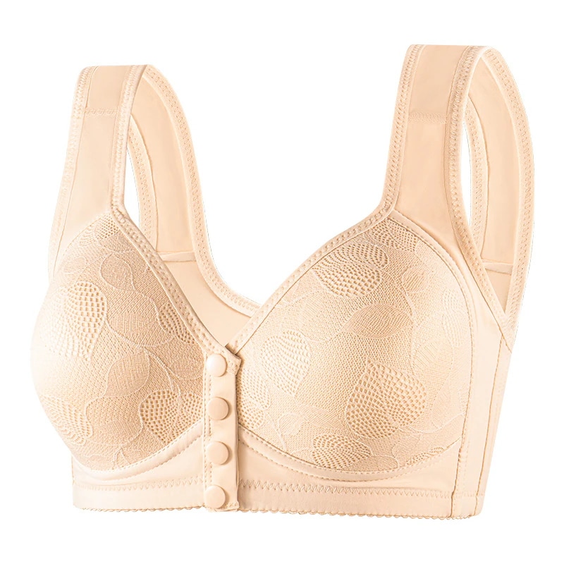 フロントホック式快適ママ用ブラジャー 薄手タイプの中高年向け大サイズ・ワイヤーなし固定カップブラジャー