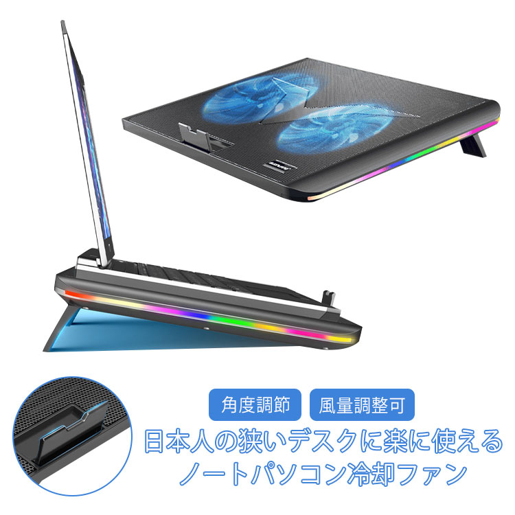 メガ割 入荷 ノートパソコン冷却パッド 2つ冷却ファン 冷却台 Lライト 風量調整可 角度調節 ポート 冷却スタンド ノートCクーラー 大風量 静音 オフィス テレワーク 在宅勤務 ゲ