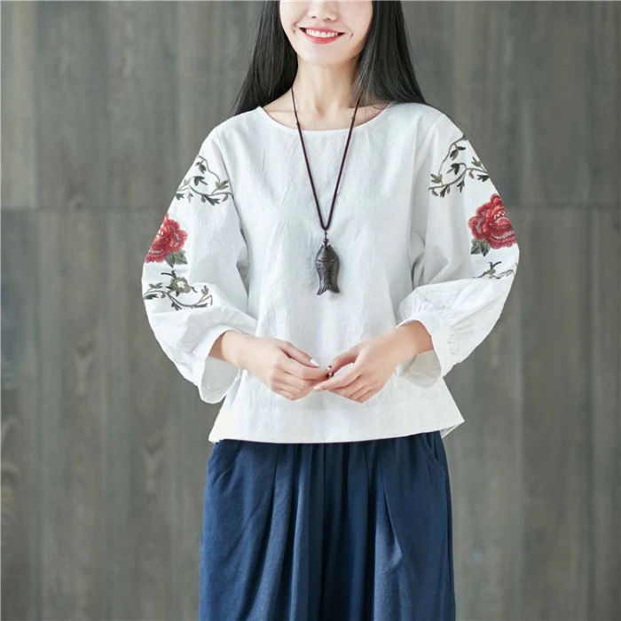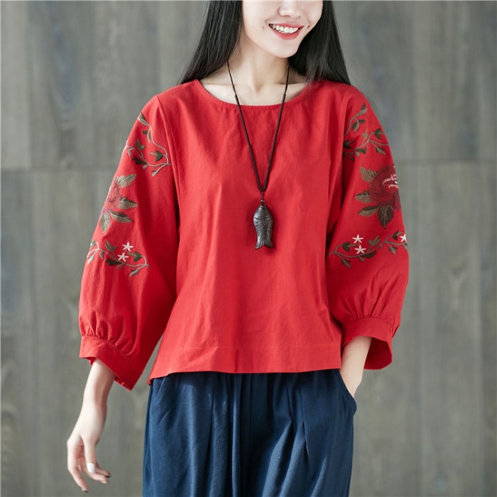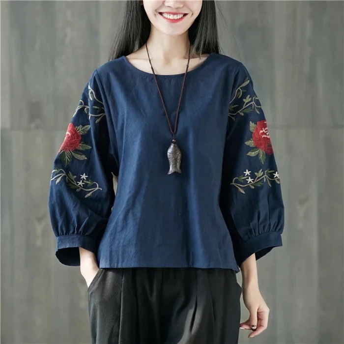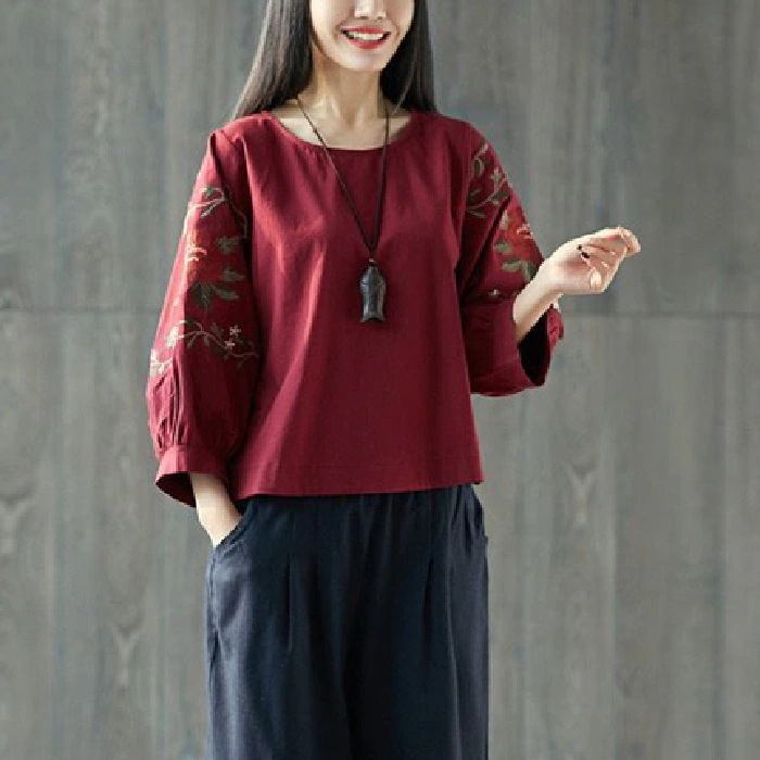 夏季新作文芸レトロ盤扣国風刺繍シャツ新作中式ゆったり斜め襟茶服トップス小衫