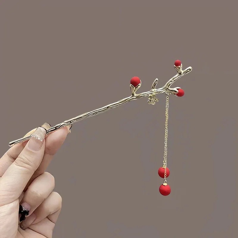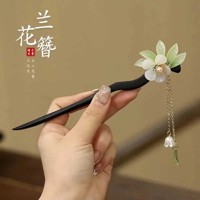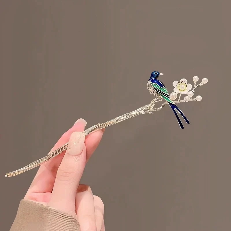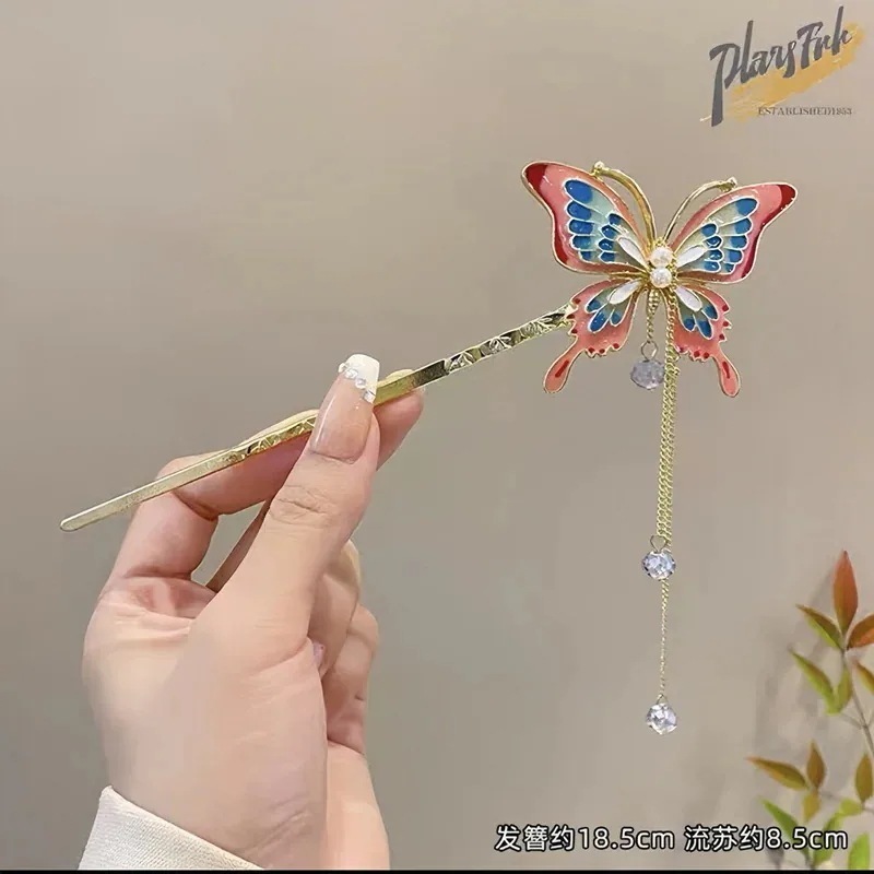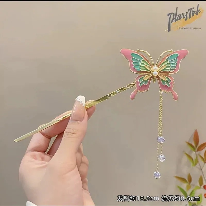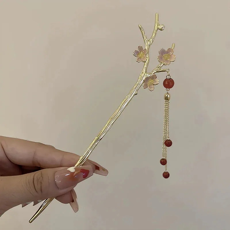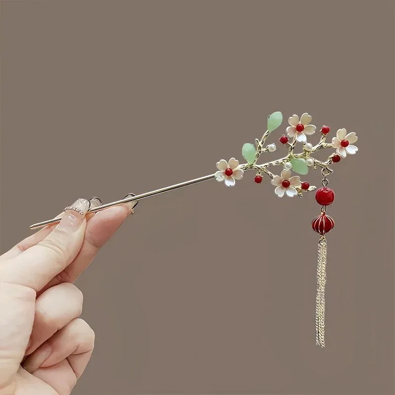 古風なファッションの花模様髪飾り流蘇と真珠の漢服・旗袍用髪飾り巻き髪用髪飾り 高級レトロなステップ揺れ蝶髪飾り