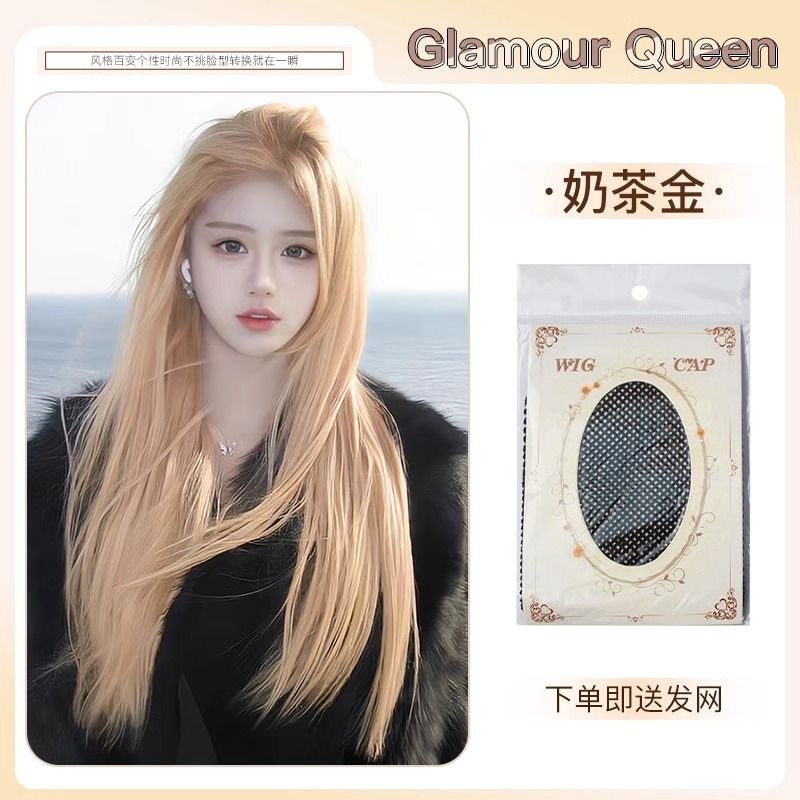【人気商品】金色ウィッグ レディースロングヘアローズ同款ガールズグループセンターパート八字前髪ロングストレートウィッグリアルヘアフルヘッドセット式