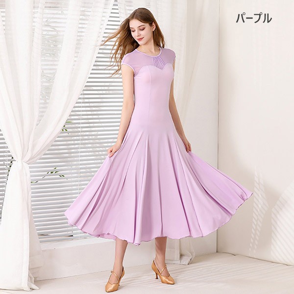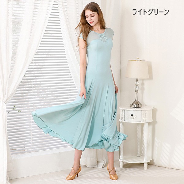 社交ダンス ドレス ロングドレス フリル モダンドレス リボン ワインレッド 社交ダンス衣装 モダン スタンダード ワルツ ワンピース 無地 ダンス衣装 ステージ衣装 パーティー 発表会 競技用