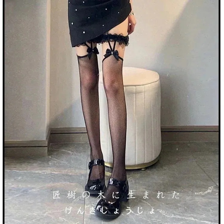 セクシー サスペンダー ストッキング リベット レッグリング 黒 シルク 女の子 中空網タイツ 人気 ニーハイソックス