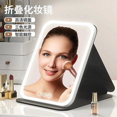LED化粧鏡携帯鏡折り畳み可能ライト付き化粧鏡デスクトップデスクトップ補光寮弁