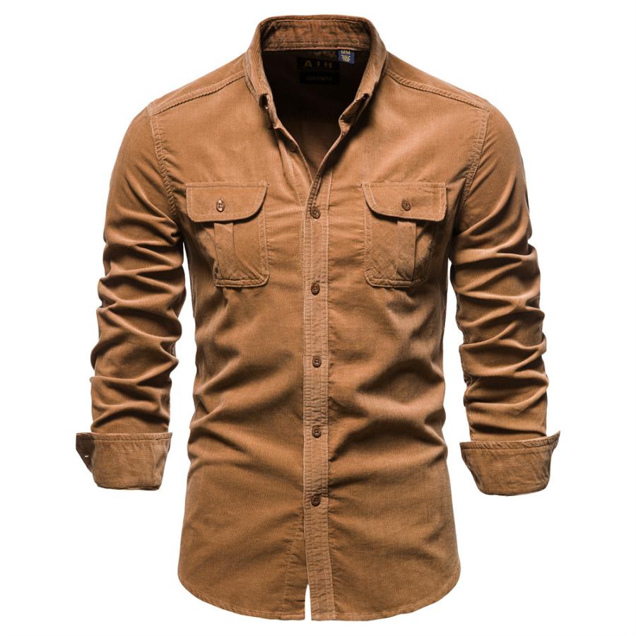 シャツ メンズ 長袖 コーデュロイシャツ 秋 開襟シャツ カジュアル 通勤 紳士服 トップス メンズファッション おしゃれ