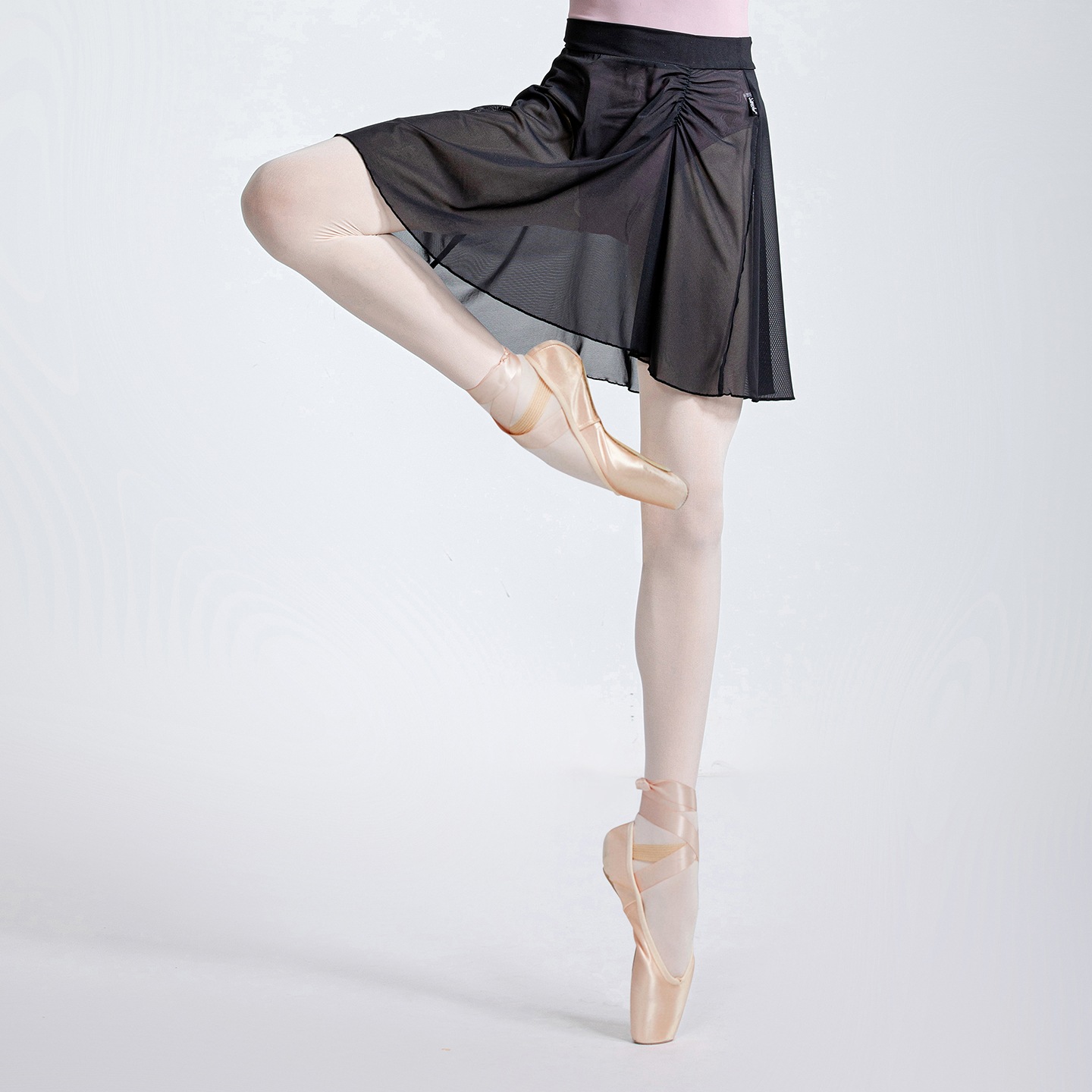 Sanshaミディスカート Aライン サイドギャザー メッシュ素材 立体感 着瘦せ ふんわり 薄手 レディース ガールズ ダンスウェア バレエ レッスン 55BE2891