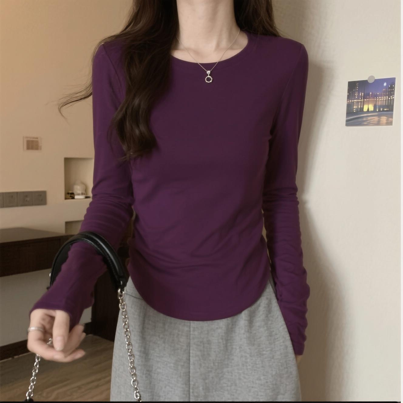 ロングスリーブTシャツのウエストシェイプインナーシャツボディコンシャスなトップス