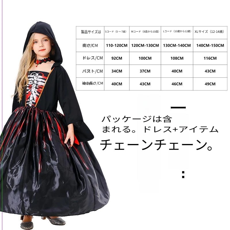 ハロウィン仮装 魔女/吸血鬼 子供用 血染めスケルトンコスチューム ホラー衣装