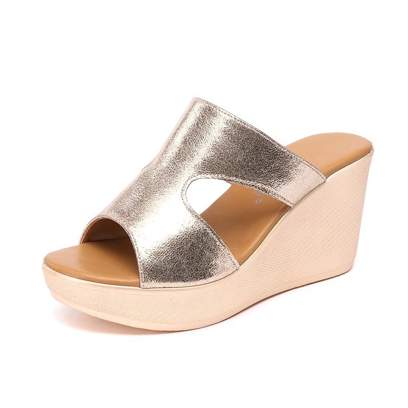 厚底サンダル ウェッジサンダル レディース 夏 2025 欧米風 プラットフォーム底 魚口 ゴールド ストラップサンダル