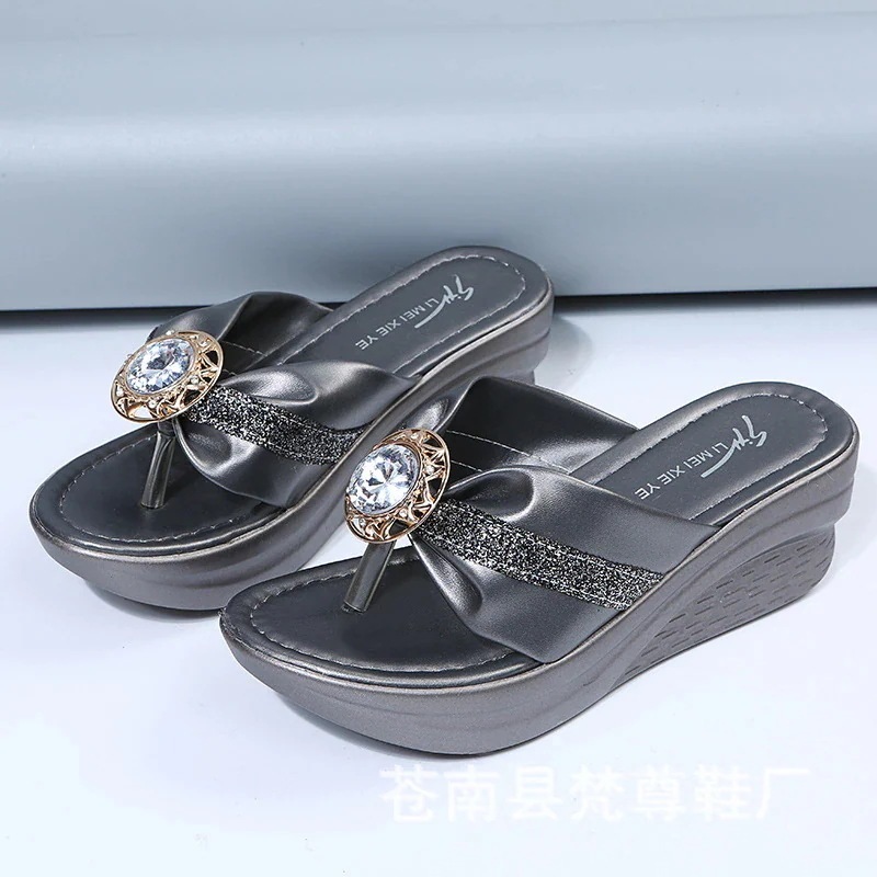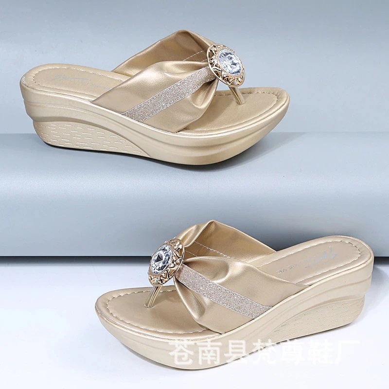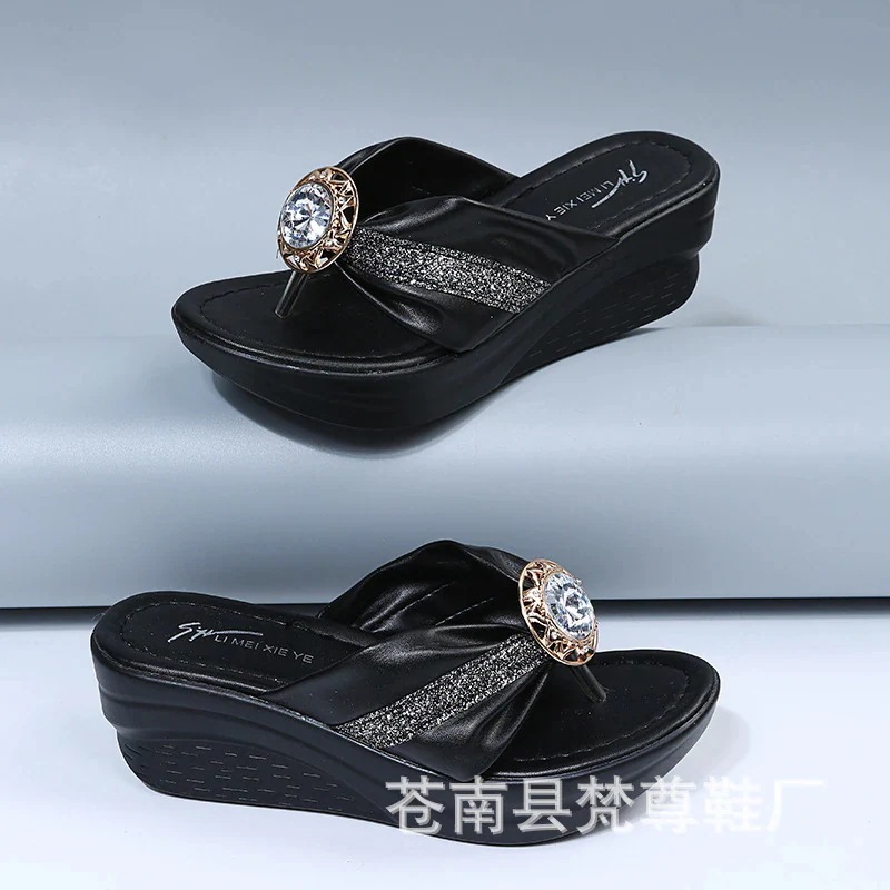 厚底サンダル サンダル レディース 夏 ビッグサイズ 2025 ウェッジサンダル プラットフォーム 厚底 ビーチ ダイヤモンド おしゃれ ビーチサンダル