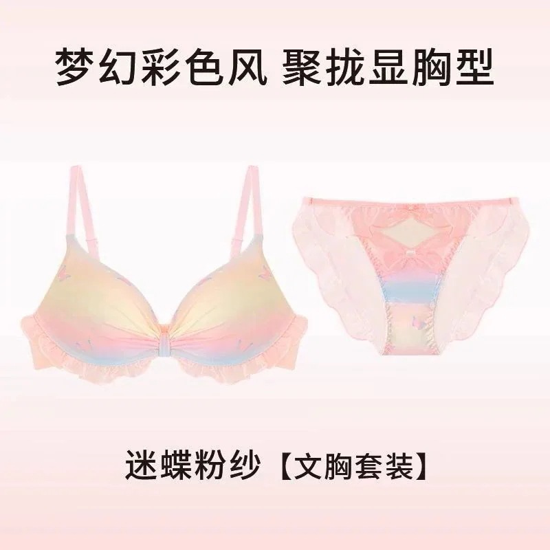 たれどめ 女性用下着 可愛いセット下着 蝶 日系 薄い ブラショーツセット ブラジャーセット
