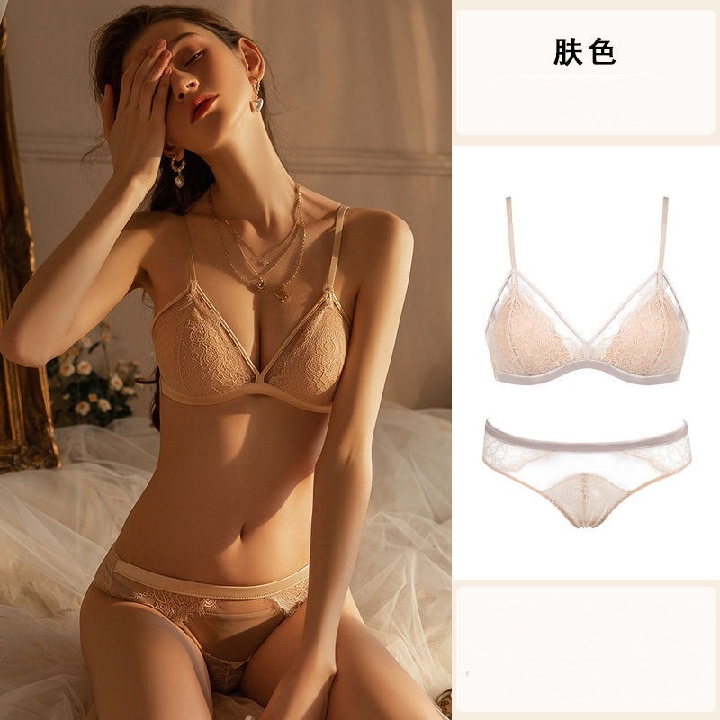 ショーツ上下セットレース ノンワイヤーブラ パンティー 下着レディース セクシー 薄い大きな胸を小さく見せる