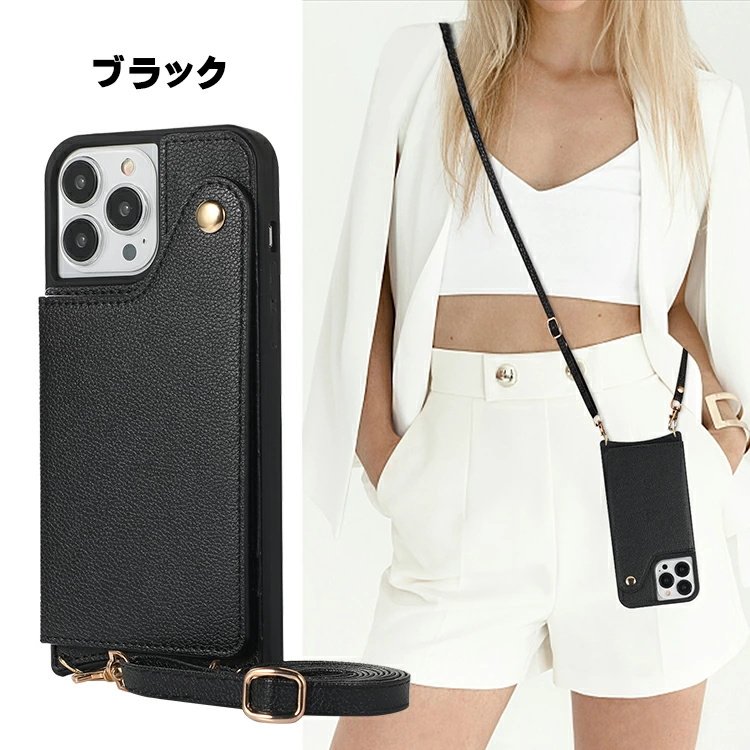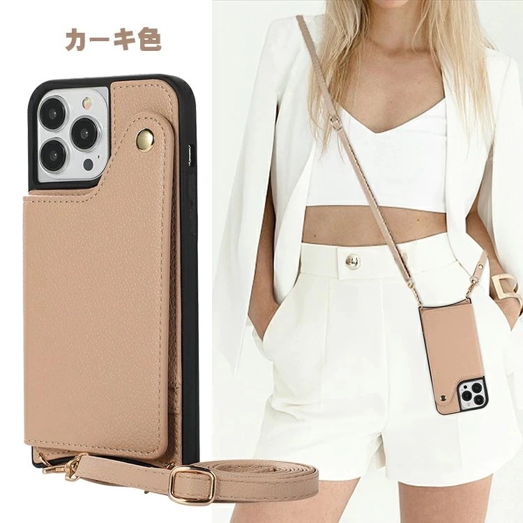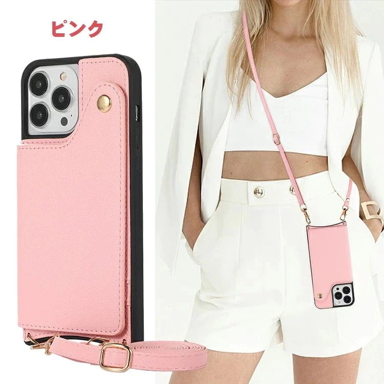 iphone16Pro ケース PUレザー 収納ポケット付き 可愛い鏡付き 化粧鏡 カード収納ケース 財布型 首掛けショルダー iphone16ケース 女性 斜め掛け式 スタンド機能付き あいふぉん