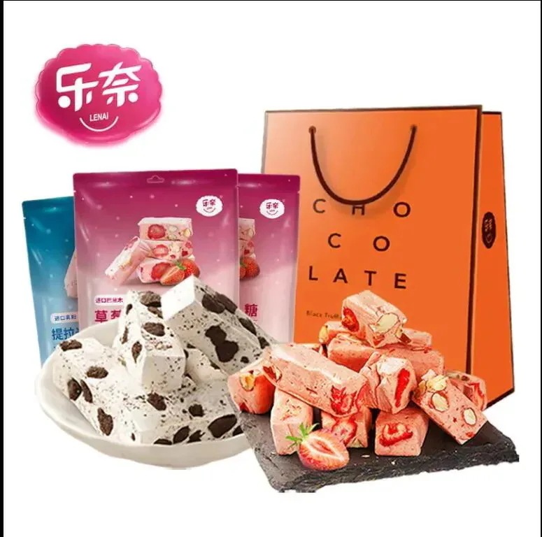 3つの味 牛軋糖 いちご苺味 お土産 お菓子 ヌガー バター使用 ヌガー 大容量 チョコレート 濃厚で優しい甘さのヌガーとド