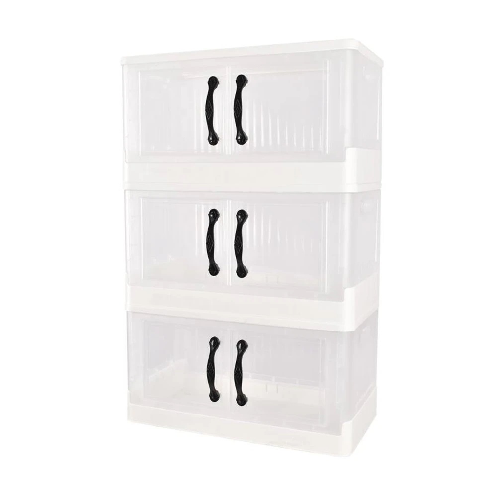 6月の収納 3段 横開き 衣類 書類 透明 3個セット 両開き 観音開き 折りたたみ キャスター付き 収納コンテナ 収納ケース フタ付き プラスチック 押し入れ収納
