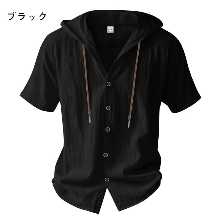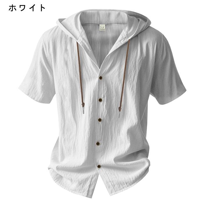 メンズ パーカー 綿麻 半袖パーカー 新作 トレンド 夏 涼しい おしゃれ 開襟