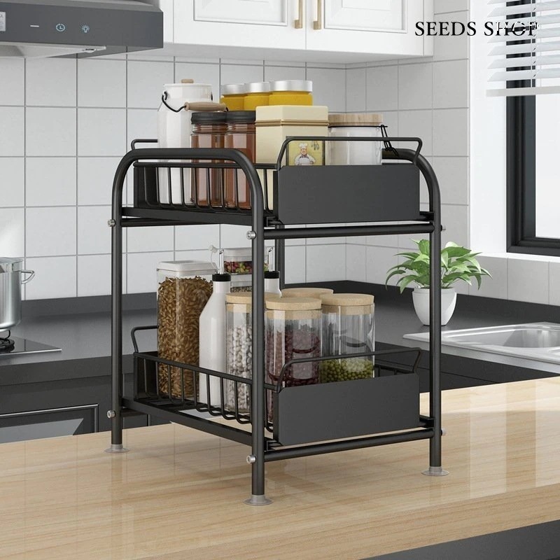 キッチンラック キッチン 調味料 収納 2段 キッチンボード スリム 大きいめ ホワイト ブラック