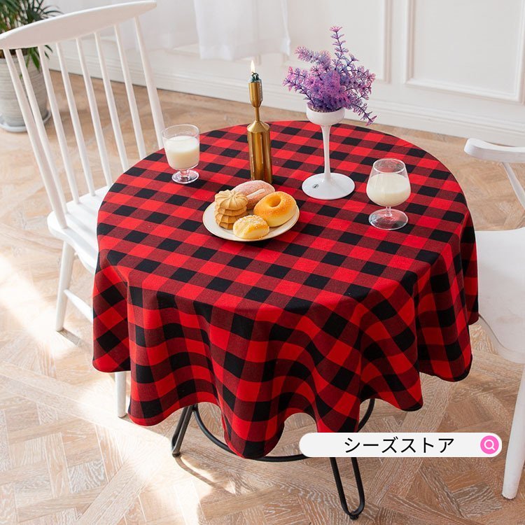 テーブルクロス 円形 アメリカン テーブルカバー 耐熱 汚れ防止 インテリア 高級 丸形 チェック
