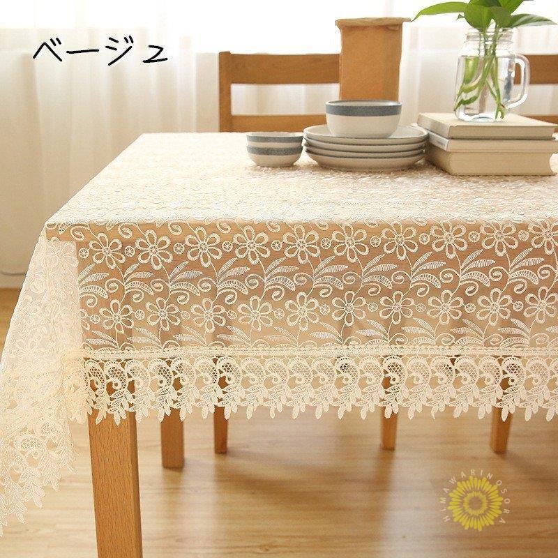 テーブルクロス レース 幅55cm215cm 食卓カバー デスクマット 防水 撥油 北欧風 花柄 汚れ防止 傷防止 長方形 モダン おしゃれ ベージュ
