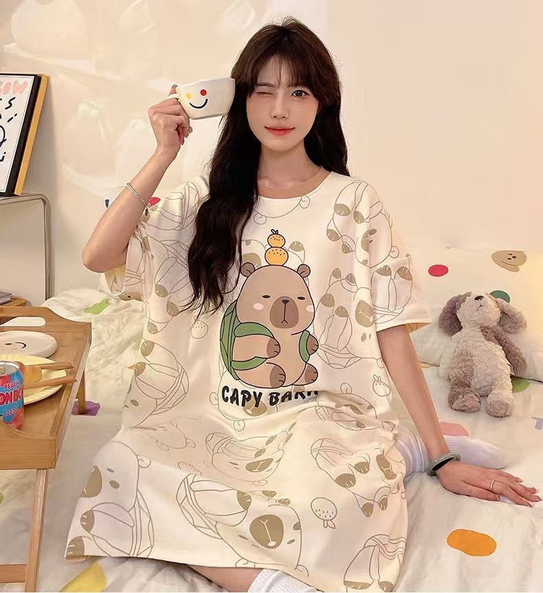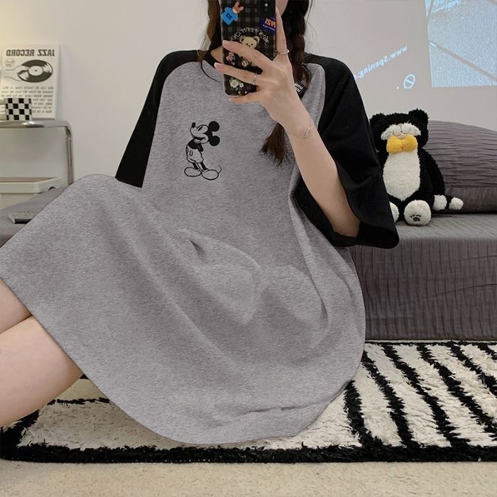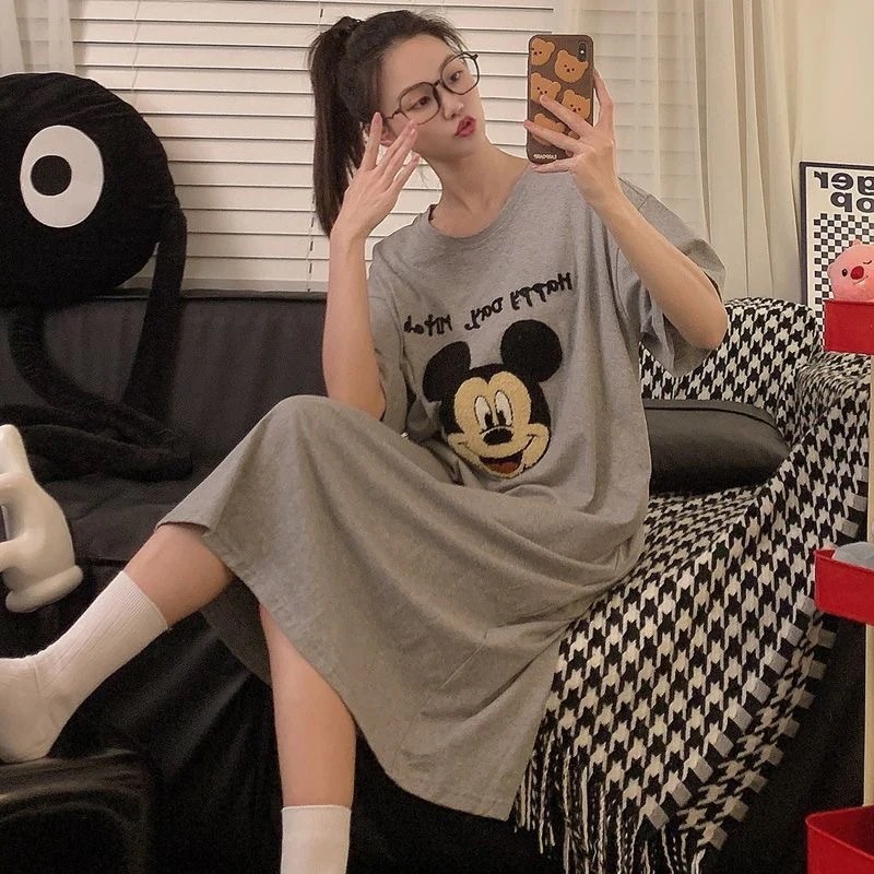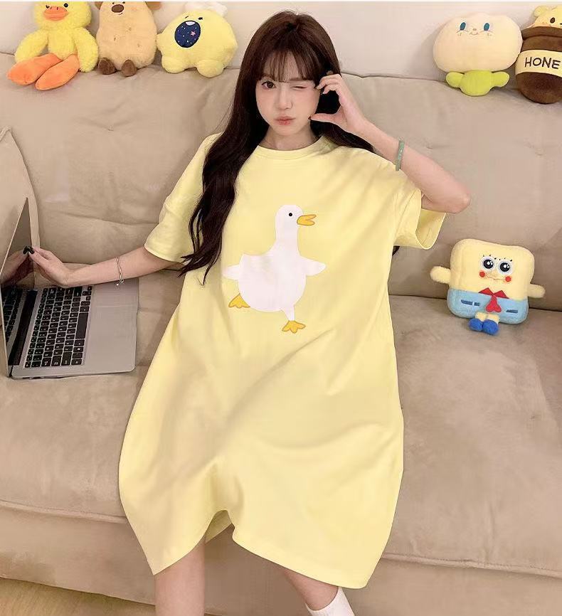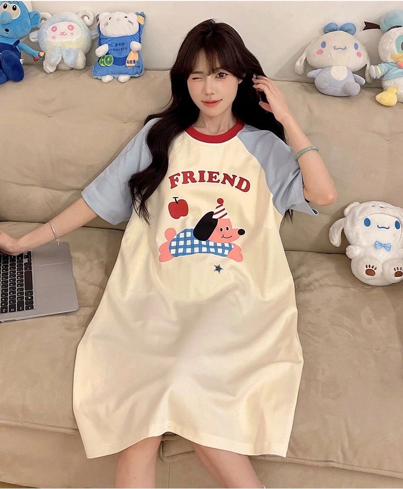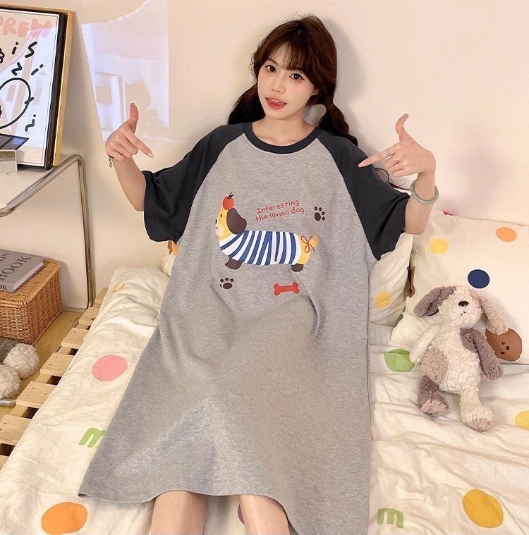 【2件2 0 0円 引き】2025スリーパー女子春夏レディース半袖パジャマ丸首可愛いkt猫2025型学生用ロングスカートルームウェア