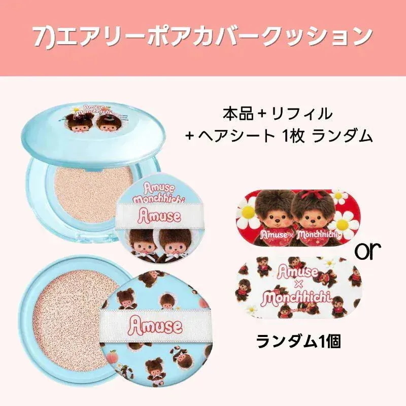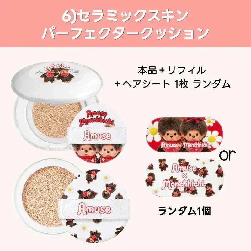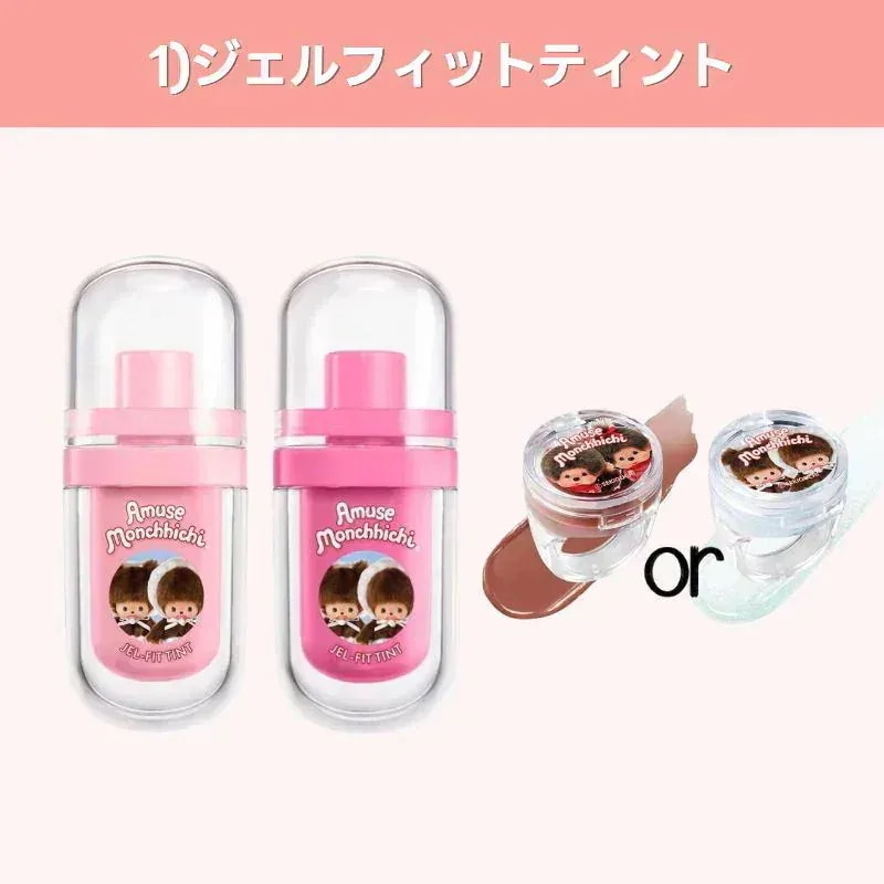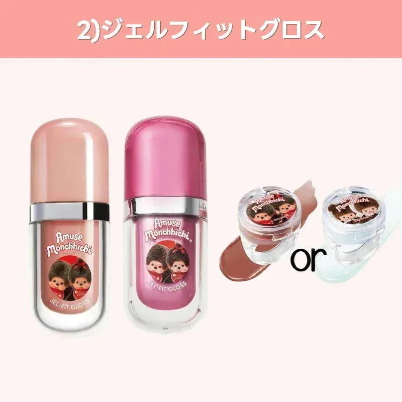 アミューズ【モンチッチコラボ】ジェルフィットティント/ジェルフィットグロス/バナナリップオイル/フローラアイパレット/チーク/リップ/クッションファンデ/パフ