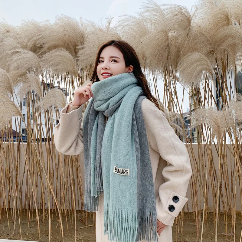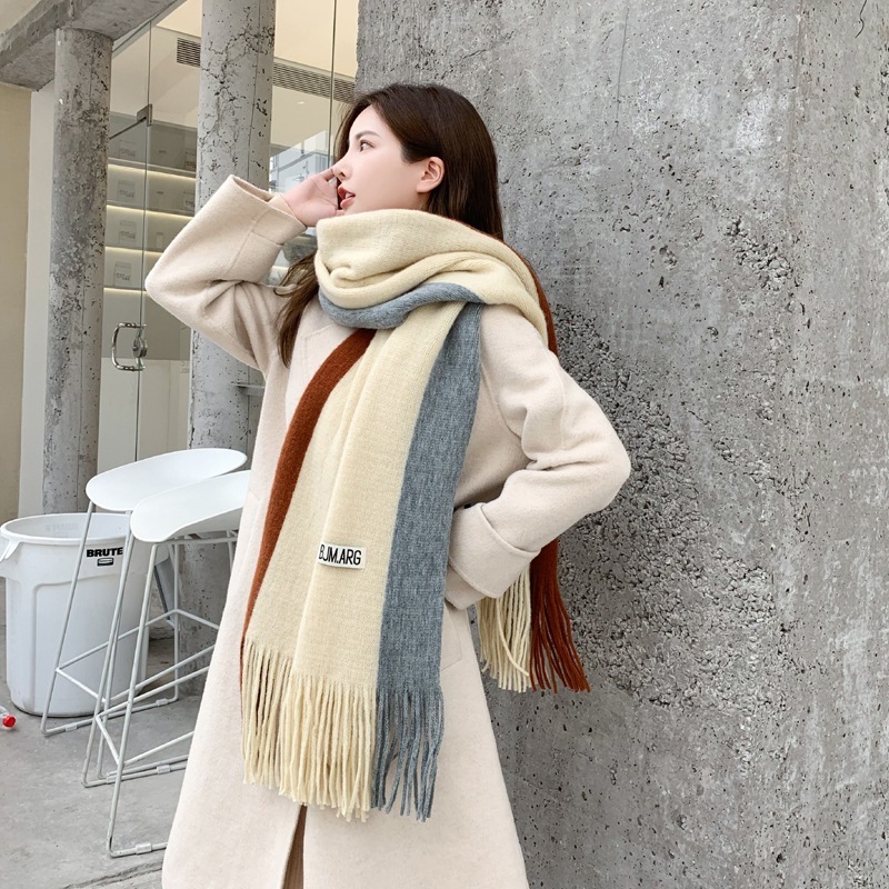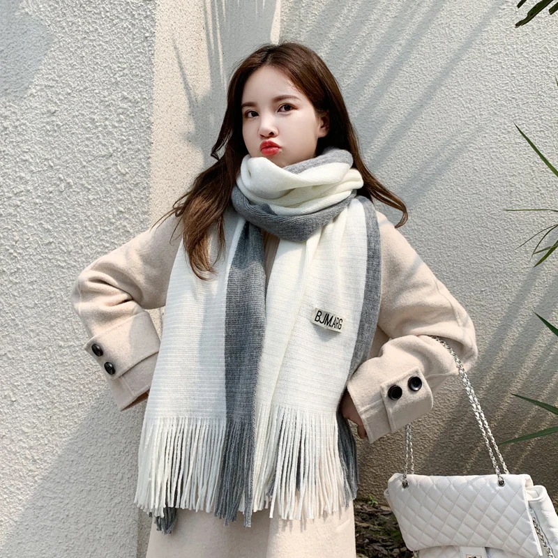 新しいスタイル 秋と冬 カラーマッチングネックスカーフ パッチワークスカーフ 模造カシミア タッセル 暖かい メンズ レディース 2色 韓国風