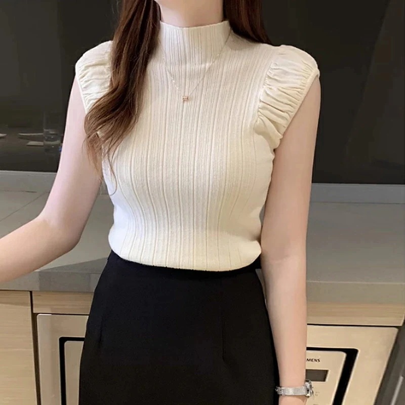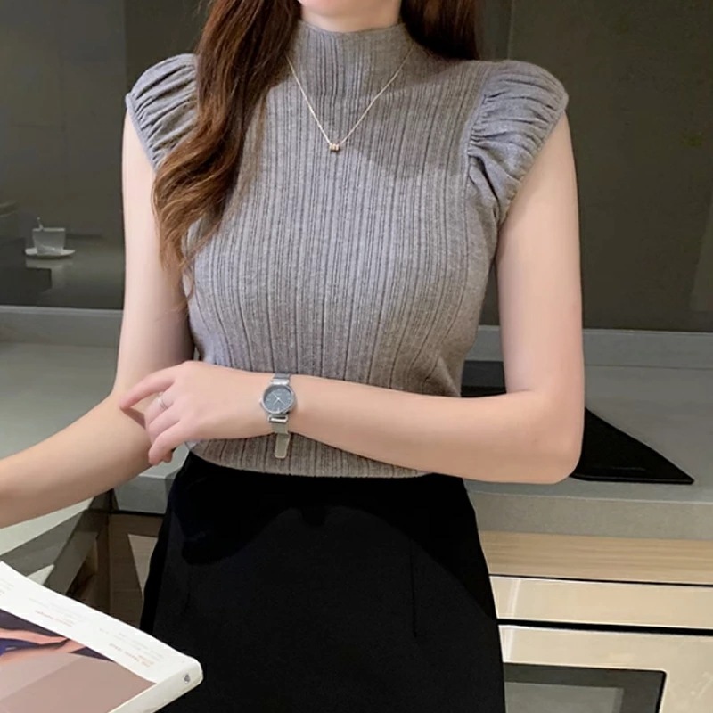 ノースリーブハイネック 無地 シャーリング タンクトップ [5タイプ]
