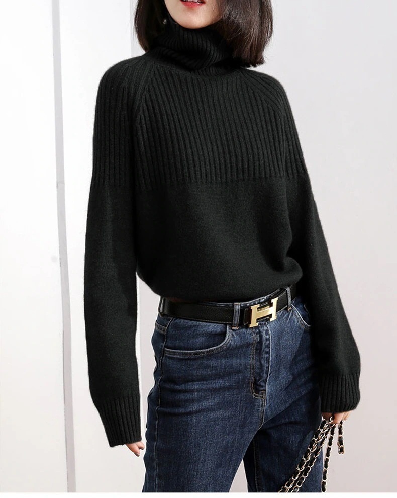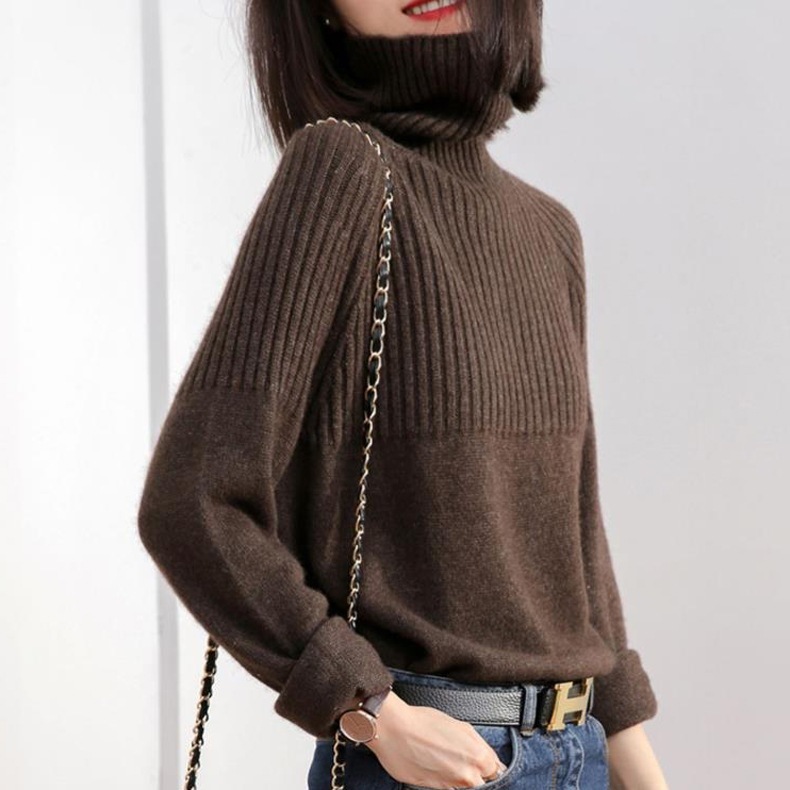 ディズニー韓国人気商品 着るだけモテニット!厚手ハイネックニット服セーター女性ルーズレイジーウーセーター/ハイカラー大サイズ無地厚手シャツ