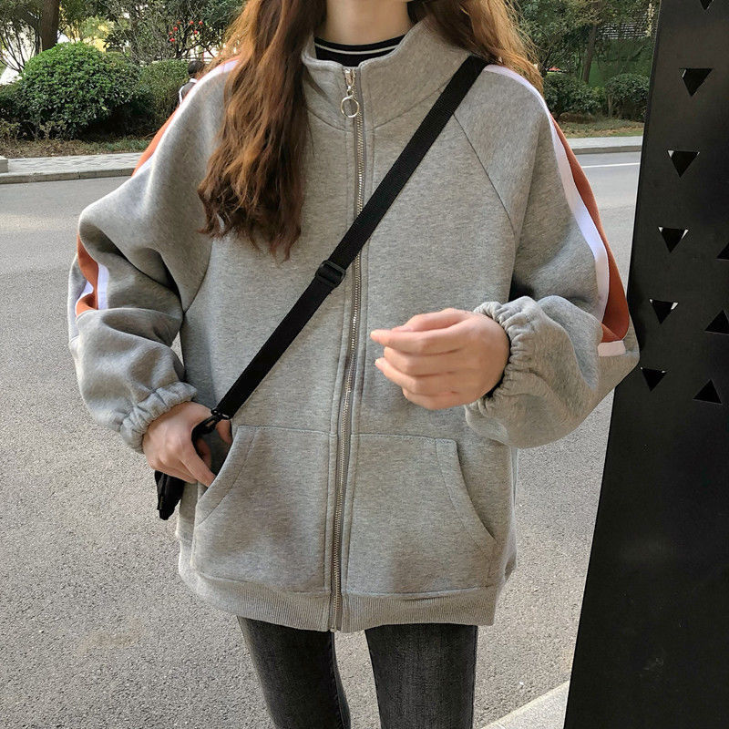 Jinbukang火災インジップセータージャケット女性秋と冬の新しい韓国語バージョンの緩いBF怠惰な風の学生トップス ジャンパー・ブルゾン