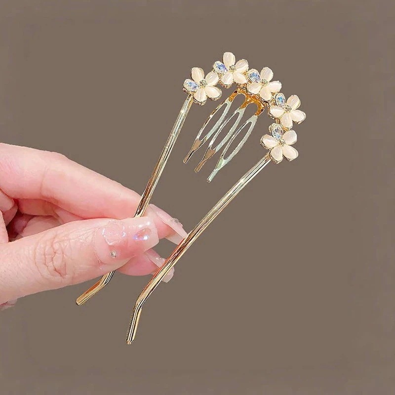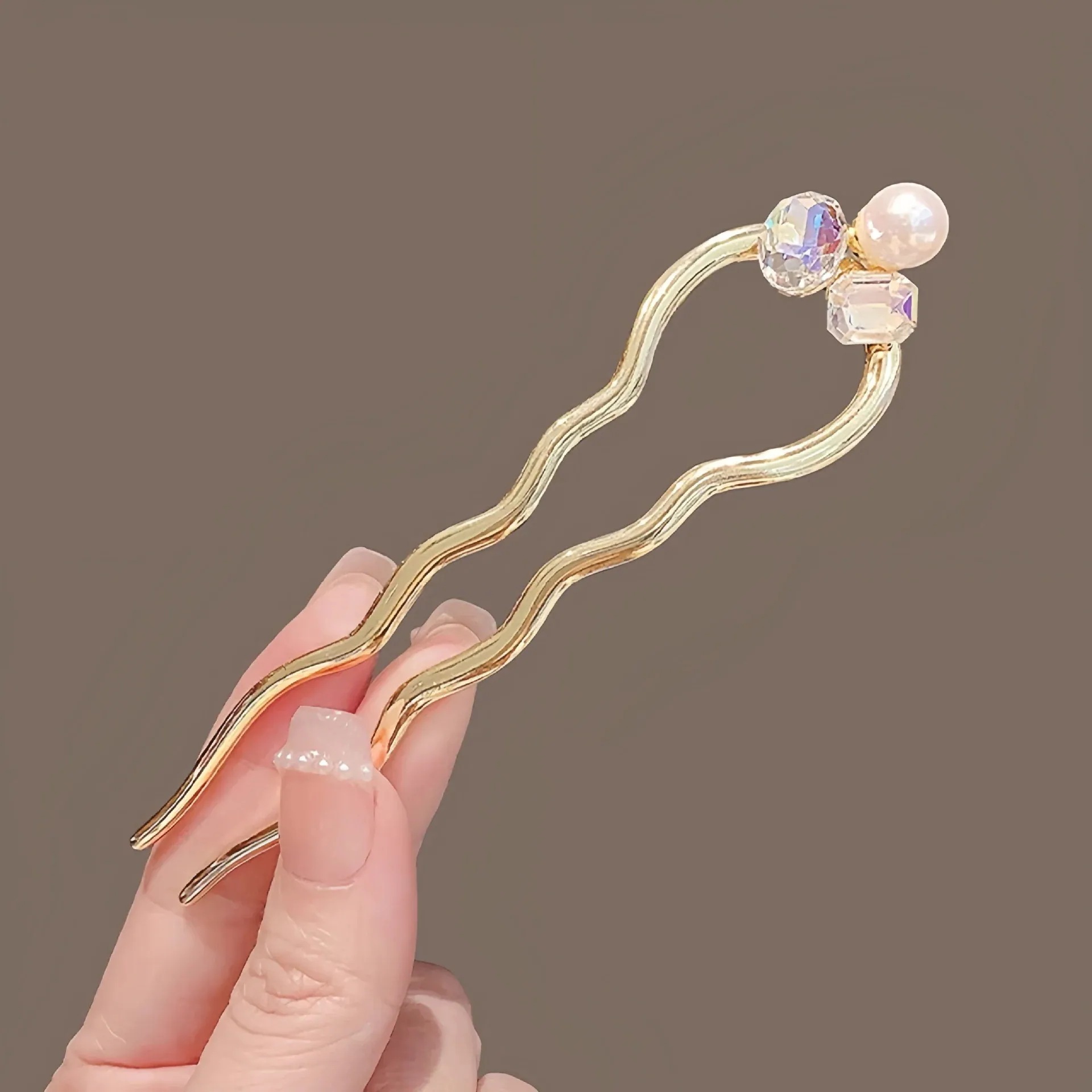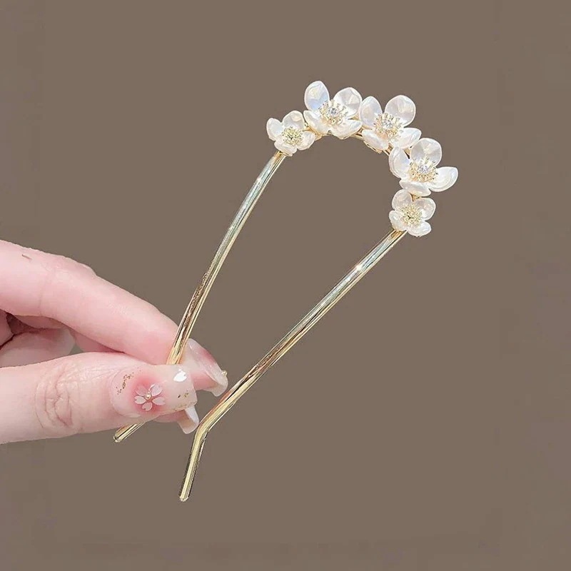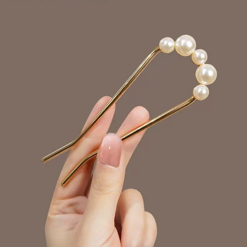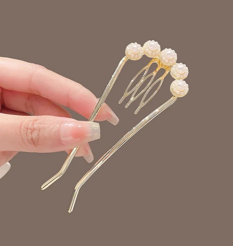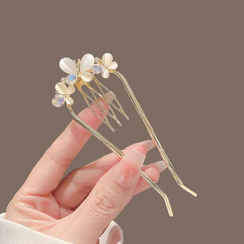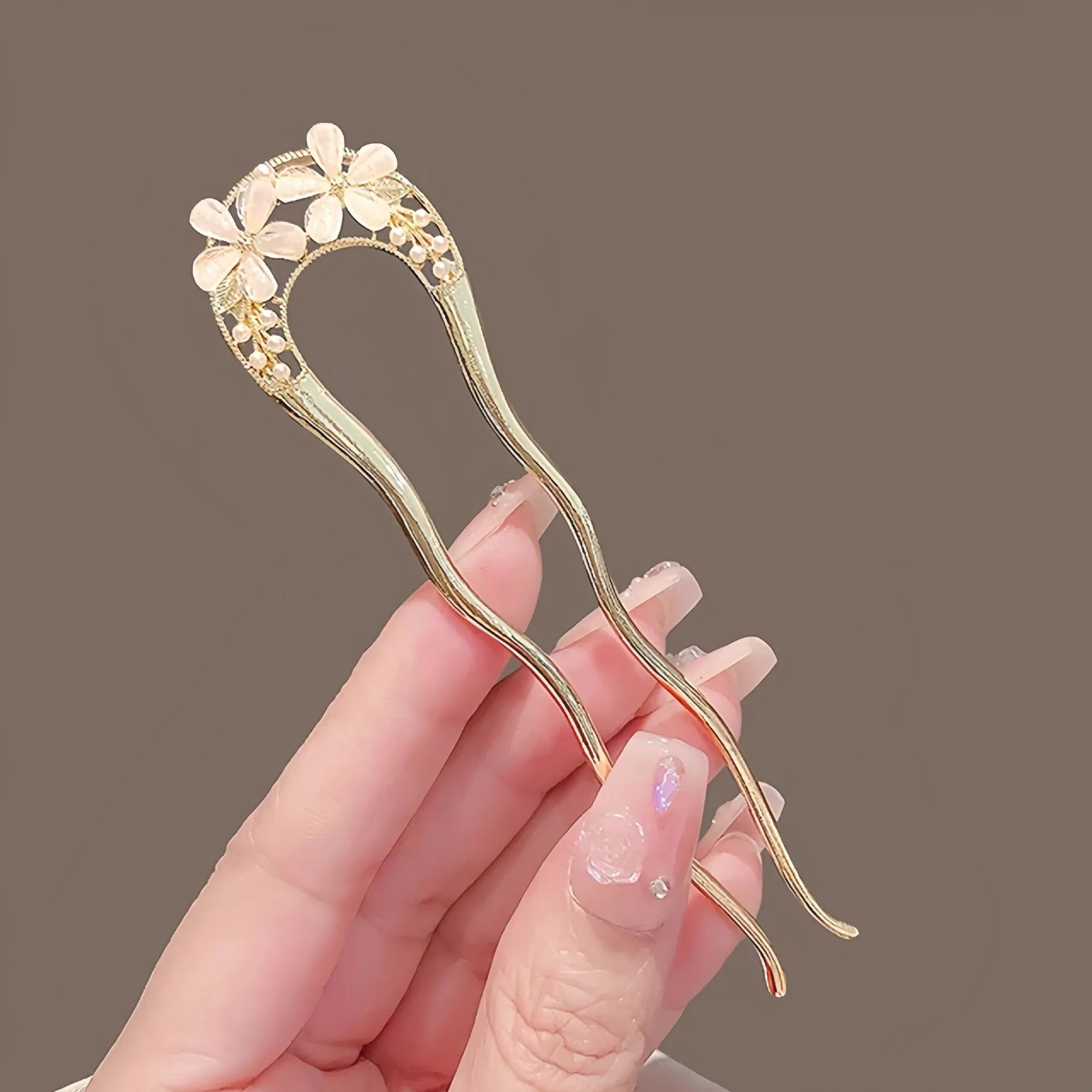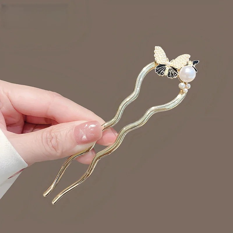 新中式 優雅なパールとバタフライデザインのU字型髪飾り 高級後頭部用巻き髪用髪飾り 漢服用ヘッドアクセサリー ヘアアクセサリー