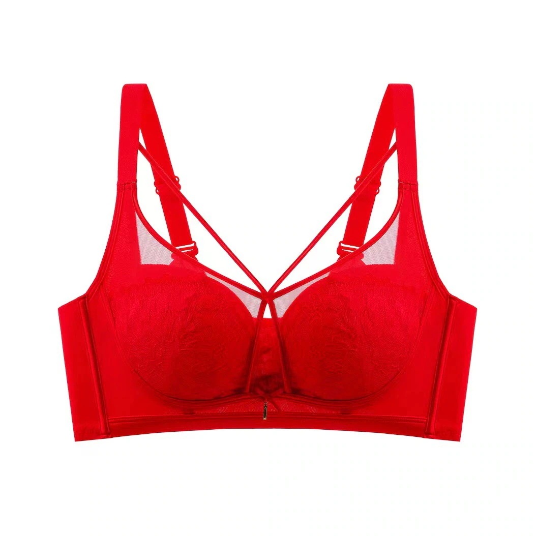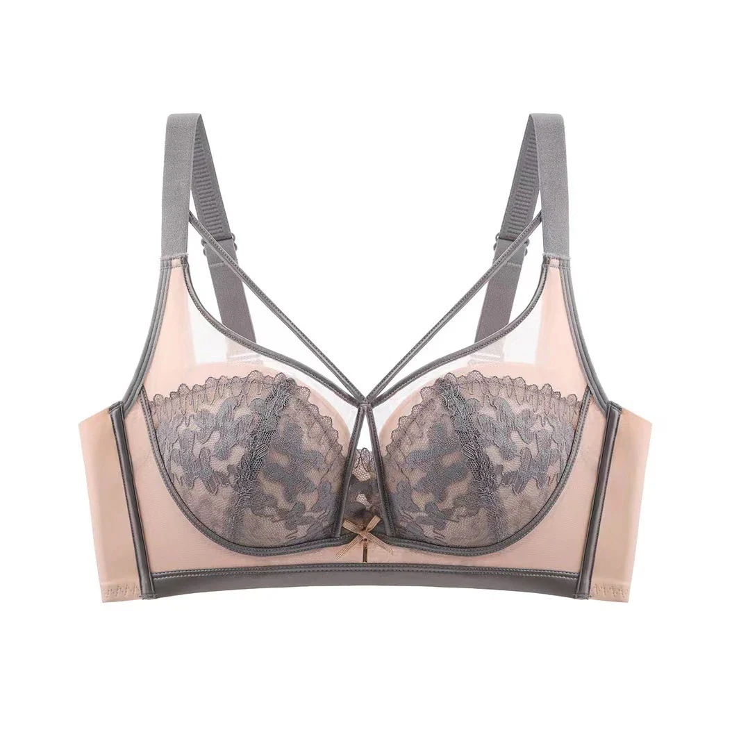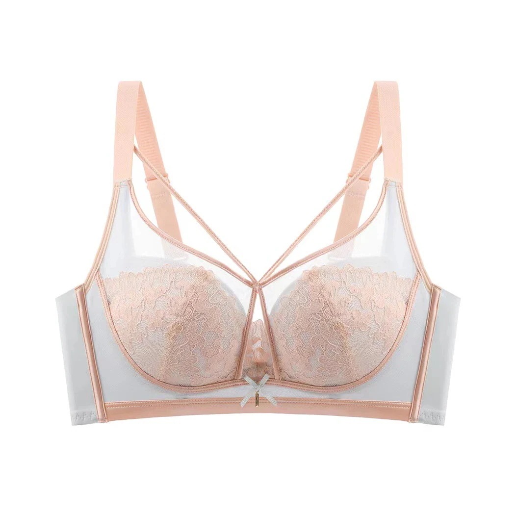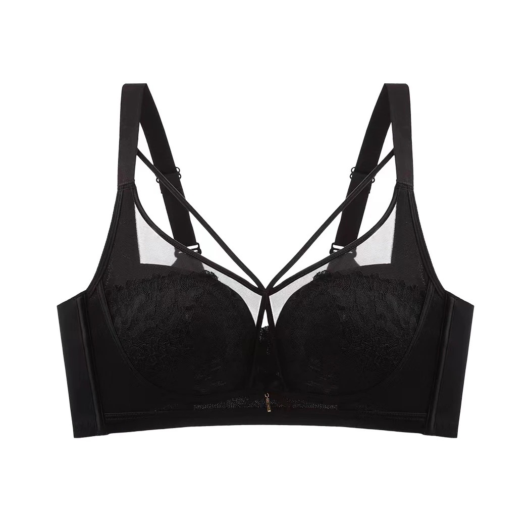 2025年 肌触りの無痕デザイン 中厚手 透かし模様 美胸効果 レース カラーブロック ランジェリー 胸を美しく整える 通気性の月型サポート セクシーなブラジャー