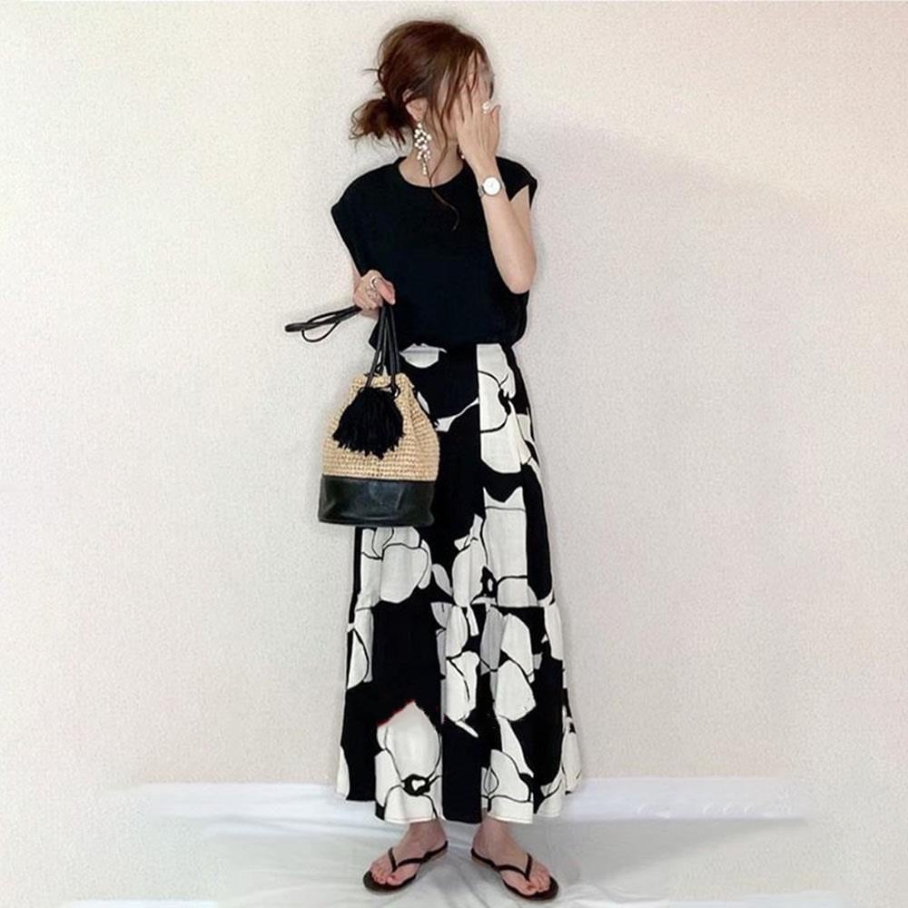 夏用韓国新作日系アルファベットプリント半袖Tシャツセット+スカート2点セット