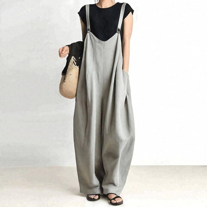 風のリラックスしたクールなワイドレッグサスペンダーパンツ 春夏新作のゆったりとした単色ワンピースサスペンダーパンツ