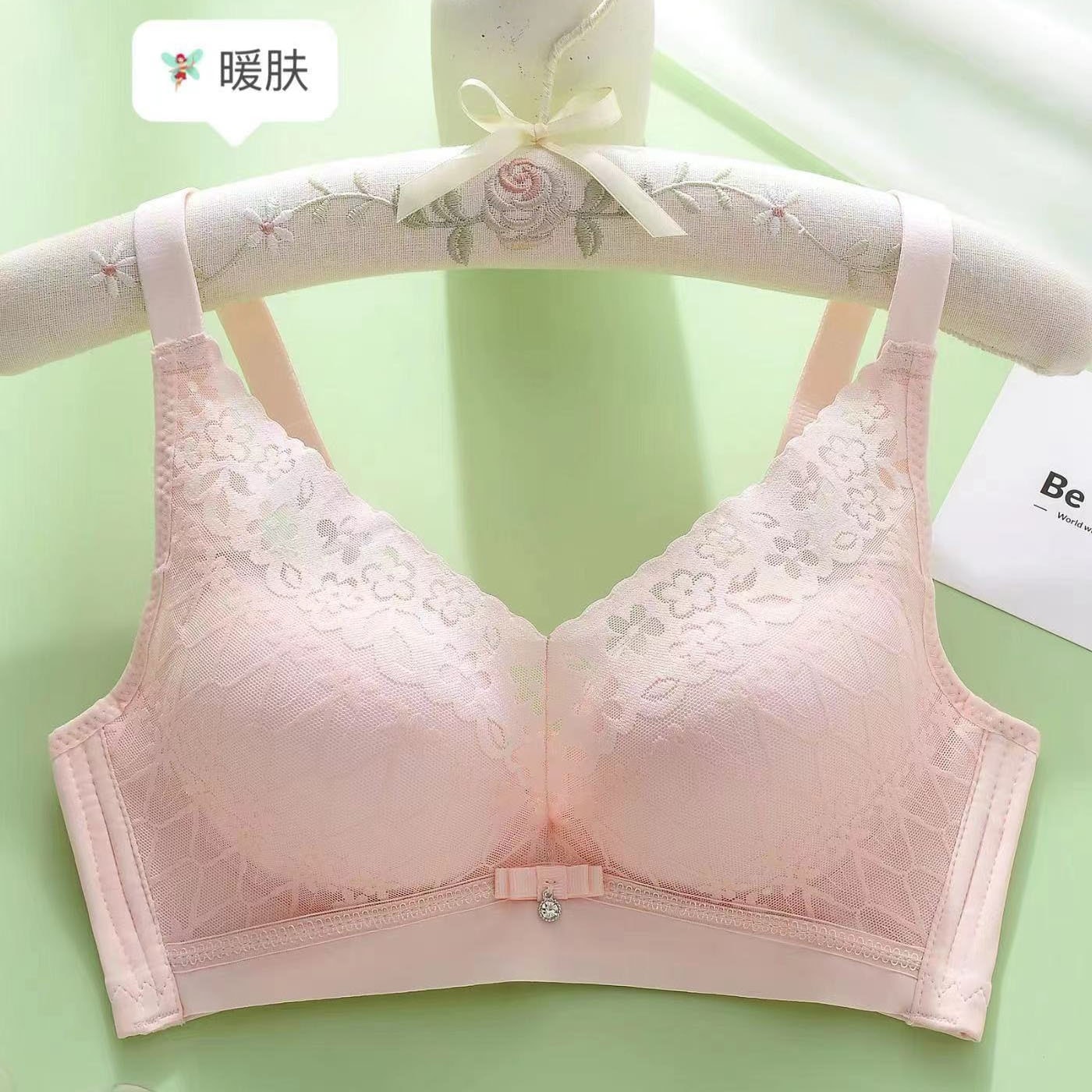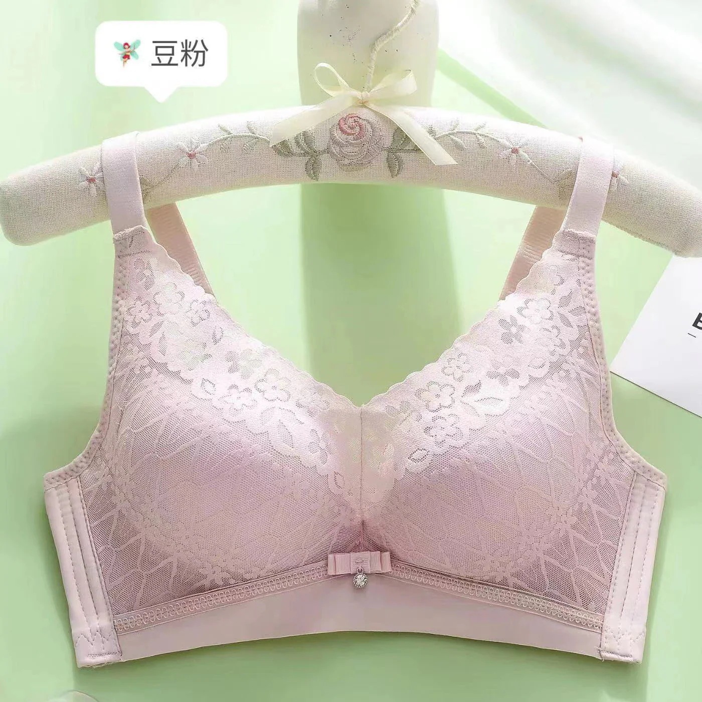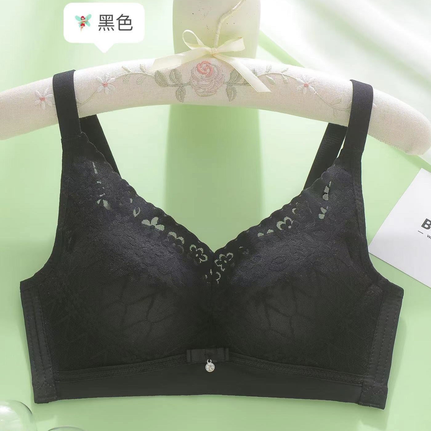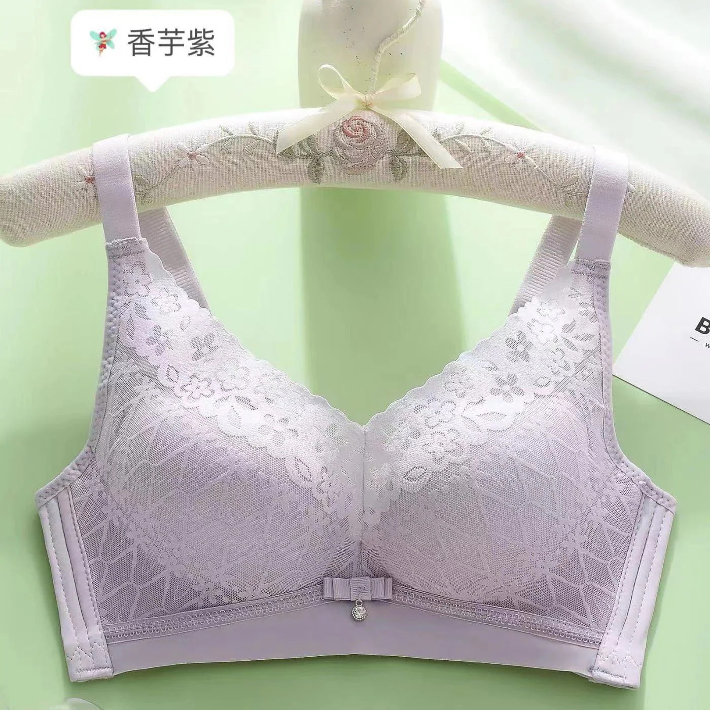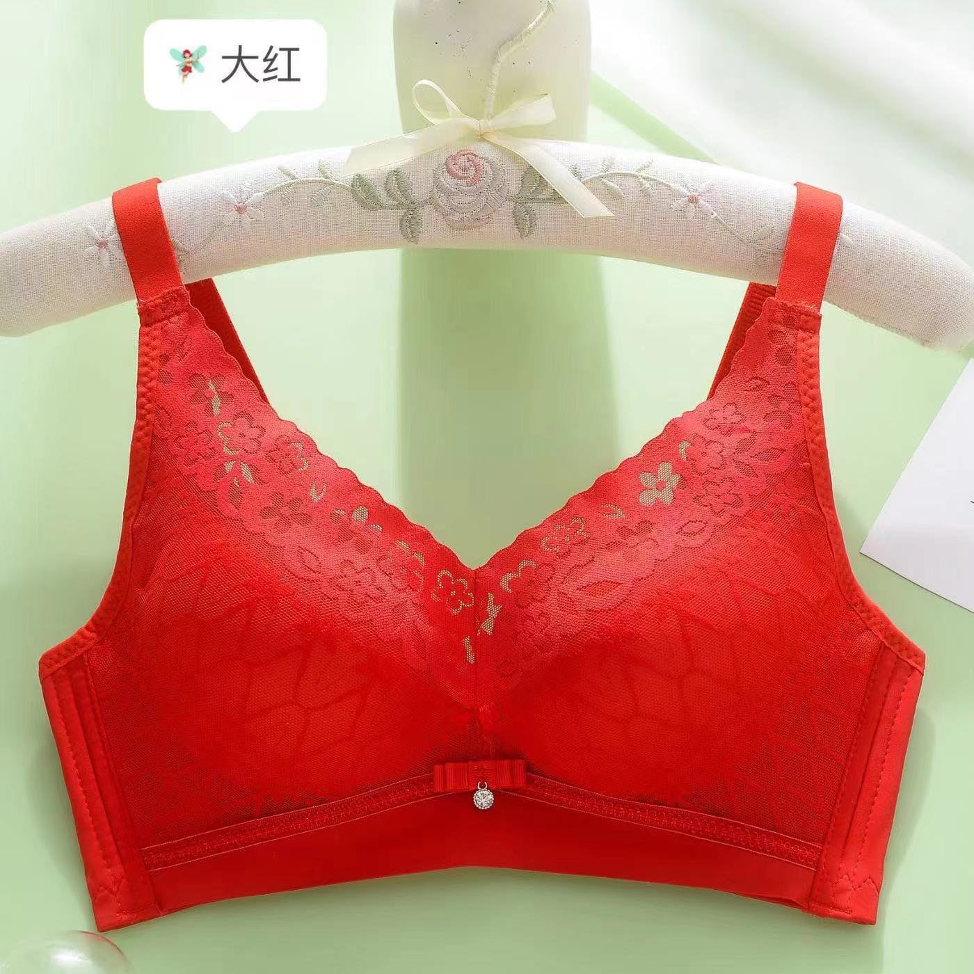 2025年 跡が残らない・ワイヤーなし・肌触りの良いコットン製中厚カップレース下着 集約・通気性・上向きサポート調整機能付きセクシーブラジャー