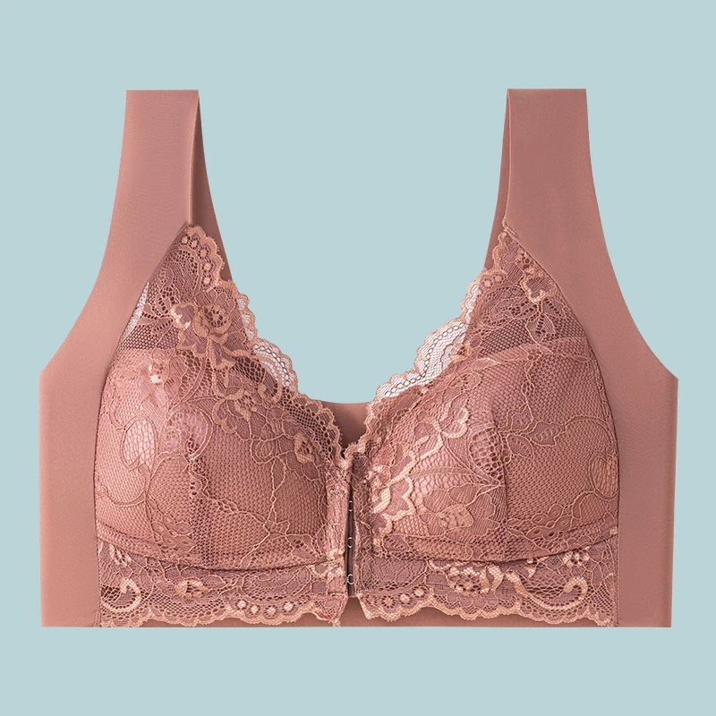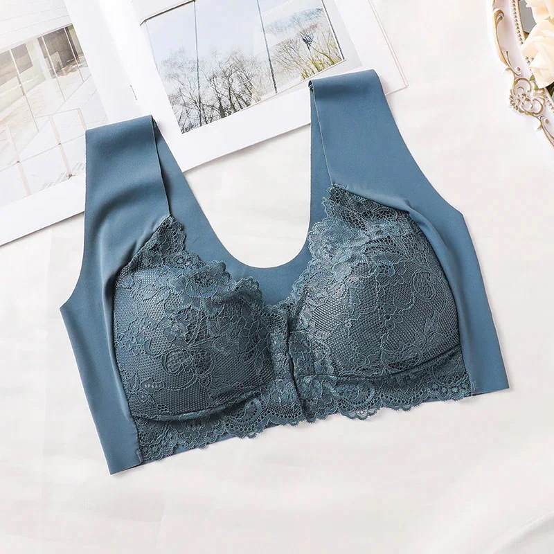 大サイズ集約式フロントホックブラジャー 固定カップリフトアップバックサポートレースベスト型ブラジャー(女性用)