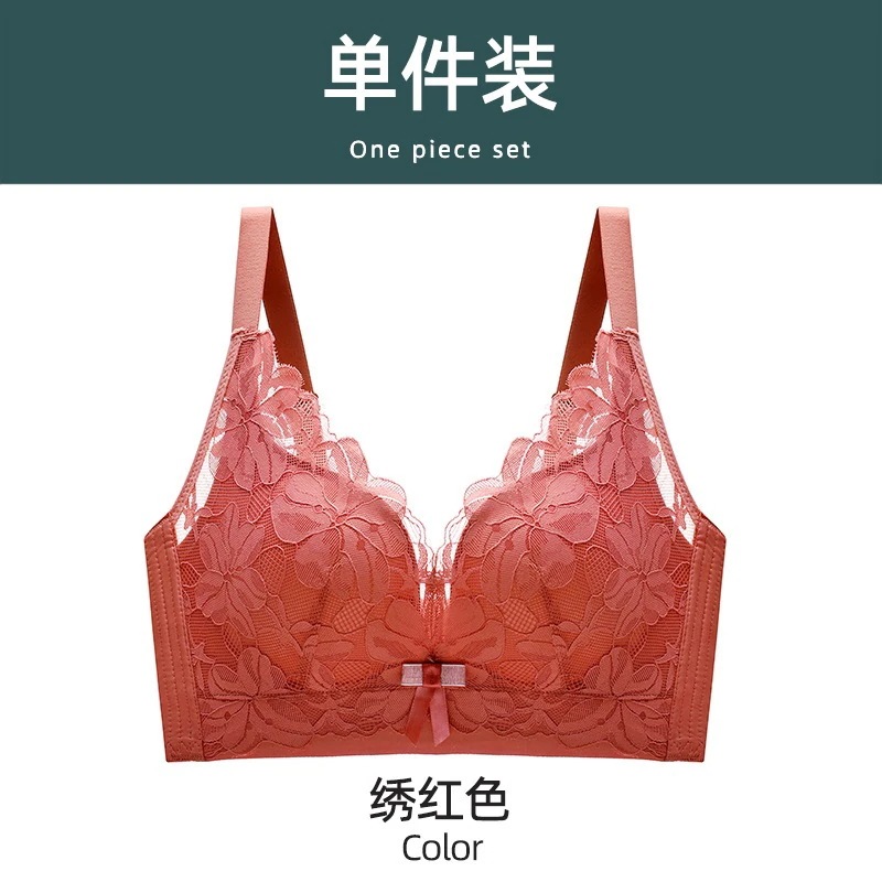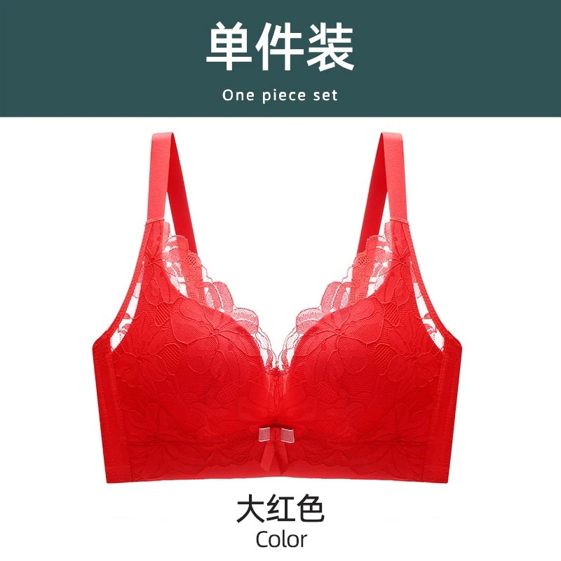 ロマンティックな花言葉のラテックスレース 大赤色ランジェリー ワイヤーなし 小胸用集約調整型 副乳防止ブラジャー