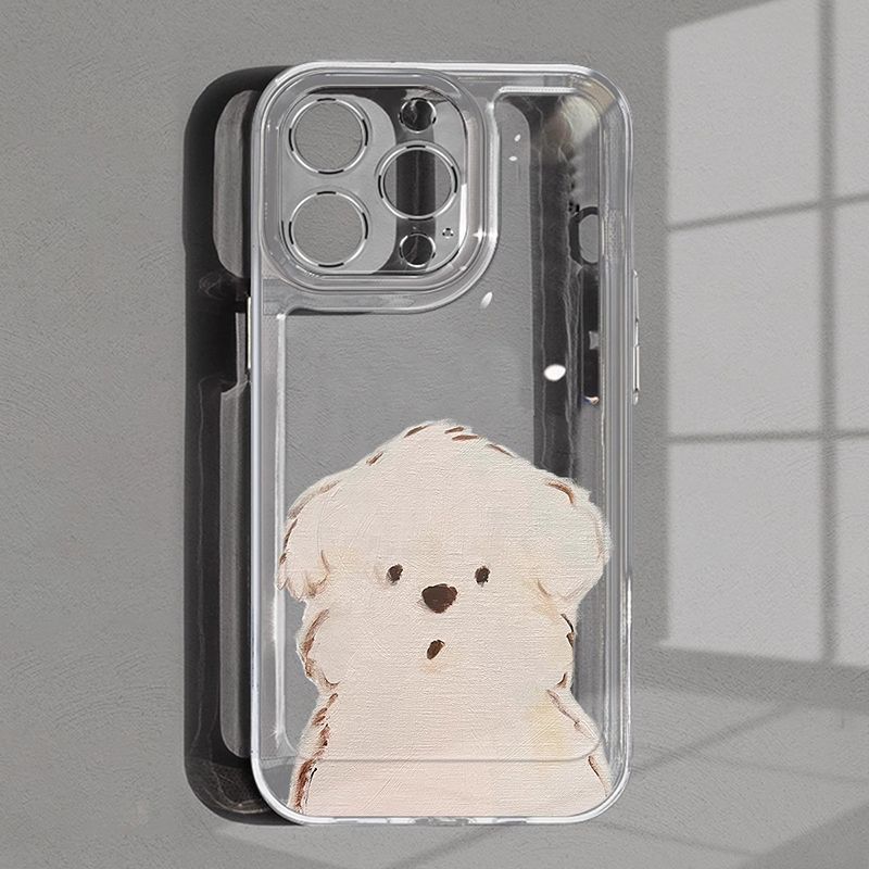 IPHONEケース iphoneケース かわいい 韓国 iPhoneケース iphone16ケース iphone16 ケース 油絵子犬アップル 16/15 マックス電話ケース 透明 落下防止