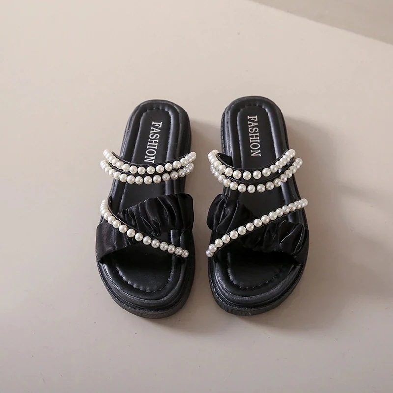 【 迅速な出荷 】厚底サンダルビーチサンダル 母の日 韓国 ファッション 美脚 パール サンダル レディース シューズ 靴 疲れない フラットリボンサンダル