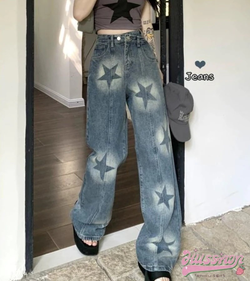 ペイント ハイウエスト センターライン ボトムス ワイドパンツ デニムパンツ スタイルアップ 脚長 ゆったり ワイドレッグ カジュアル きれいめ ヴィンテージ