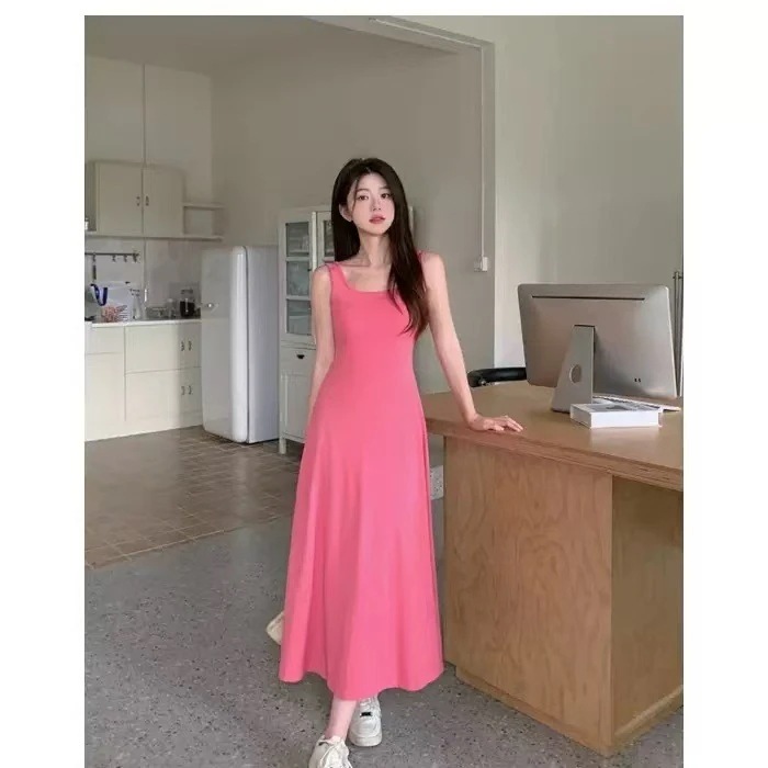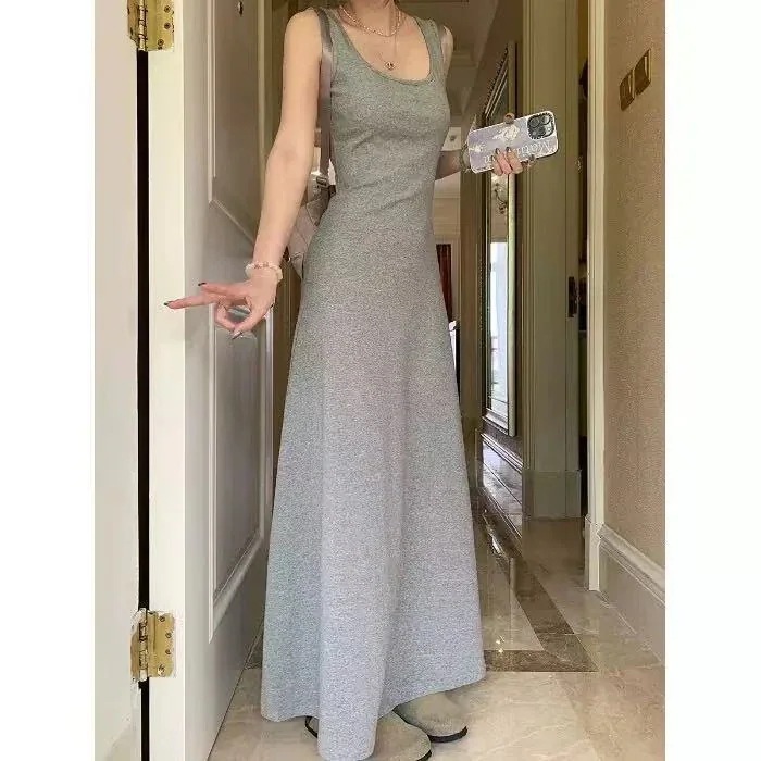 韓国ファッションドレス 着痩 ワンピース 薄い彼 セクシー キャミソール レディース 夏 グリーン ワンピース エアリー グレー ベスト ロング 休日スタイル スカート